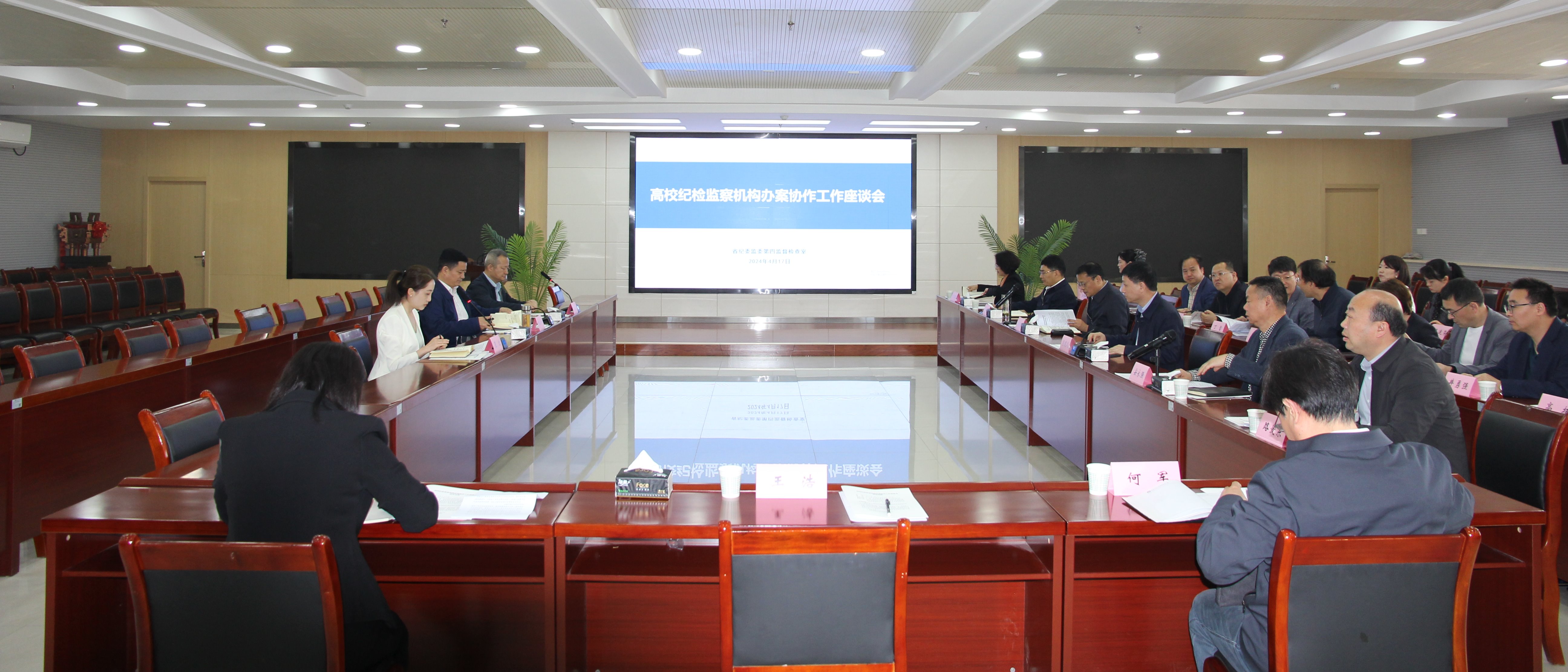 4月17日,陕西省高校纪检监察机构第二办案协作区工作座谈会在AC米兰官网长安校区召开。省纪委监委委员张永祥、第四监督检查室副主任卢刚、二级调研员慕洁,AC米兰官网党委副书记、纪委书记、省纪委监委驻校纪检监察组组长肖道远,西安交通大学、西北政法大学、陕西理工大学、宝鸡文理学院、安康学院、商洛学院、陕西职业技术学院、陕西机电职业技术学院等高校纪检监察机构主要负责人参加座谈会。会议由卢刚主持。座谈会上,慕洁组织大家集体...