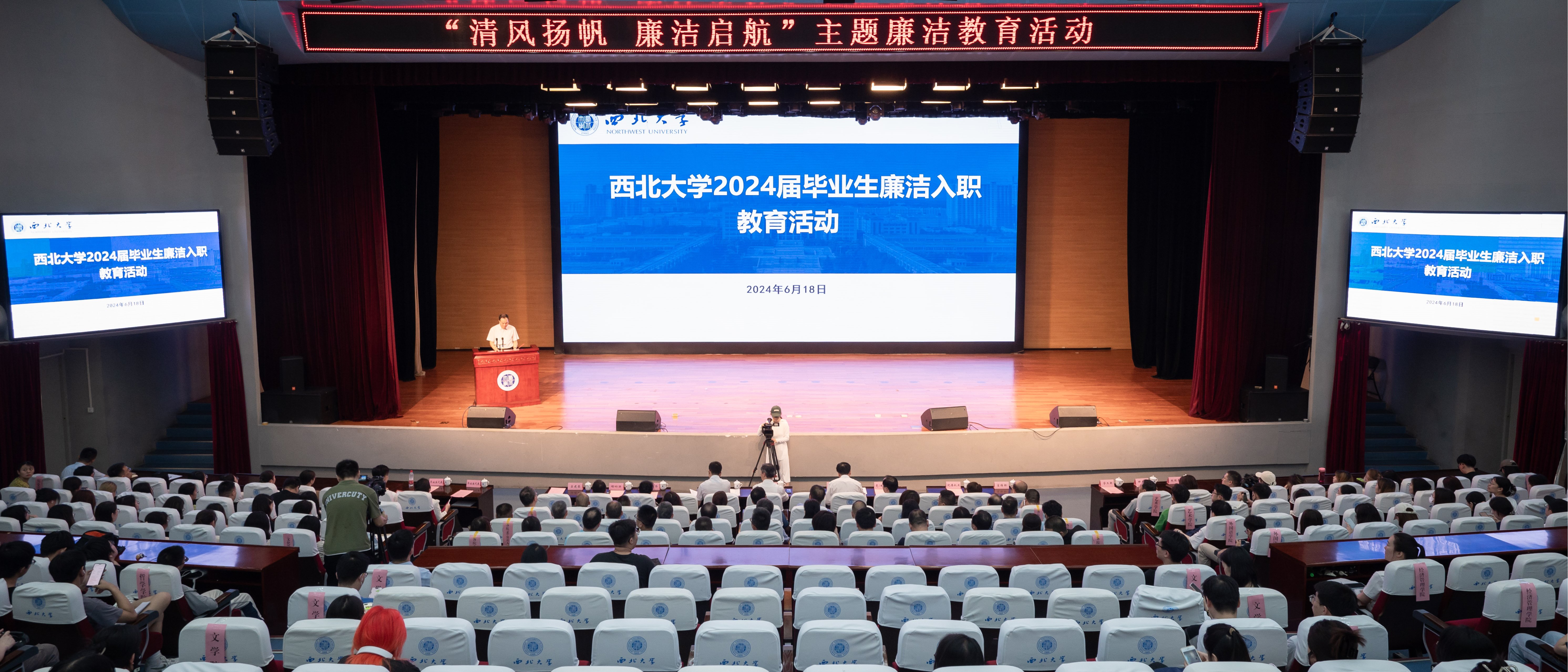 为推动党纪学习教育走深走实,帮助毕业生扣好廉洁入职“第一粒扣子”,6月18日下午,学校在长安校区召开2024届毕业生廉洁入职教育大会。校党委书记蒋林,校党委副书记、纪委书记、省纪委监委驻校纪检监察组组长肖道远,学校有关部门和院(系)负责人,以及500余名毕业生代表参加会议。会议由校党委副书记吕建荣主持。2024届毕业生在“清风扬帆 廉洁启航”横幅签字留念,代表了出征前的廉洁宣誓,也在西大留下珍贵的毕业纪念。大...