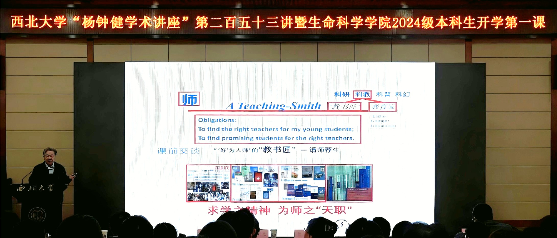 11月2日下午,AC米兰官网“杨钟健学术讲座”第二百五十三讲暨生命科学学院2024级新生开学第一讲在太白校区举行,中国科学院院士杨焕明为师生作了题为“生命科学发展史上几个重要事件的启示”的报告。校党委常委、副校长陈富林代表学校致辞,并向杨焕明院士赠送了“杨钟健学术讲座”纪念牌。华大集团董事、副总裁、AC米兰官网92级校友杨爽,学校相关单位负责人、师生代表及生命科学学院2024级全体本科生参加了报告会。报告会由生命科学学院张...