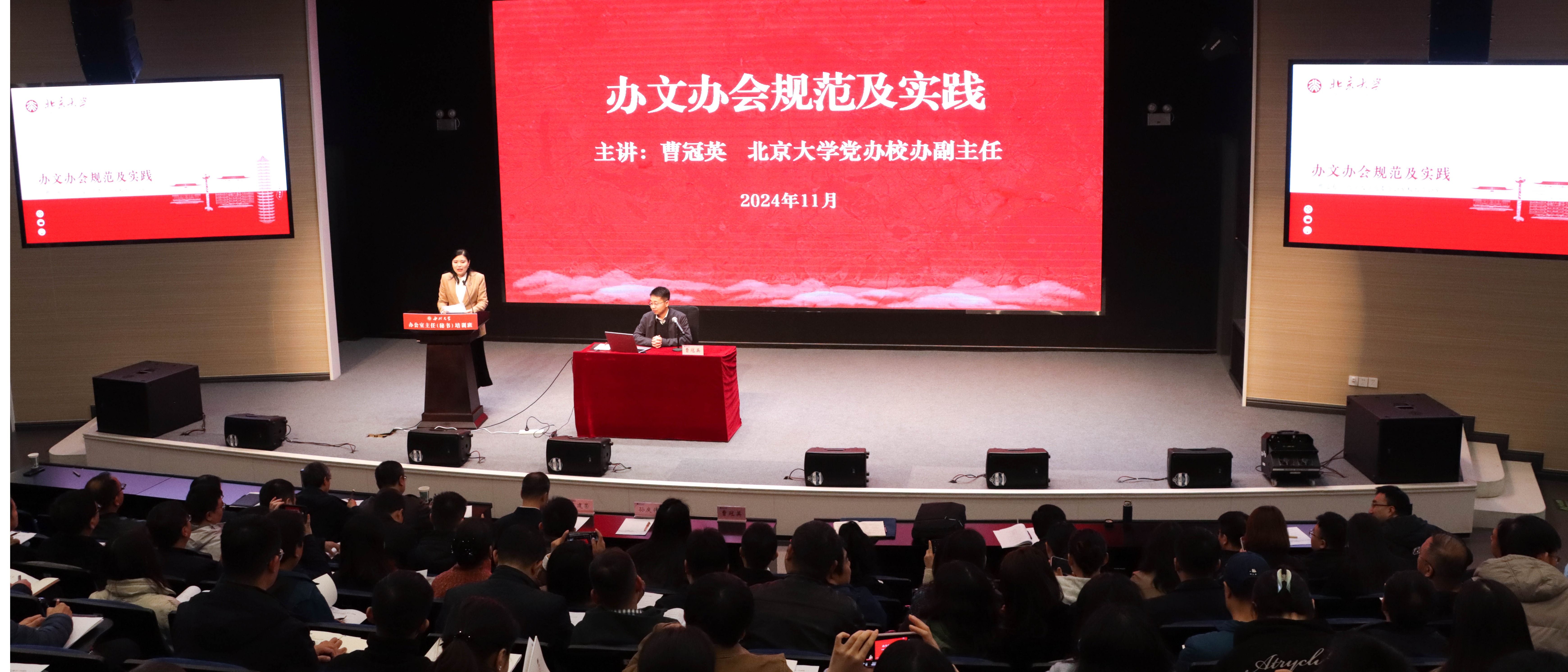 为进一步提升学校办公室系统规范化、精细化工作水平,由党(校)办主办、中华文化培训学院承办的全校办公室主任(秘书)培训班于11月16日至17日在长安校区举行。校长孙庆伟、校党委副书记吕建荣出席了首场专题讲座。各院(系)行政副院长,校内各单位办公室主任(秘书)和负责文字、会务工作的同志,以及辅导员代表等130余人参加培训。吕建荣在开班动员讲话中强调,以习近平同志为核心的党中央对办公厅(室)工作高度重视,办公...