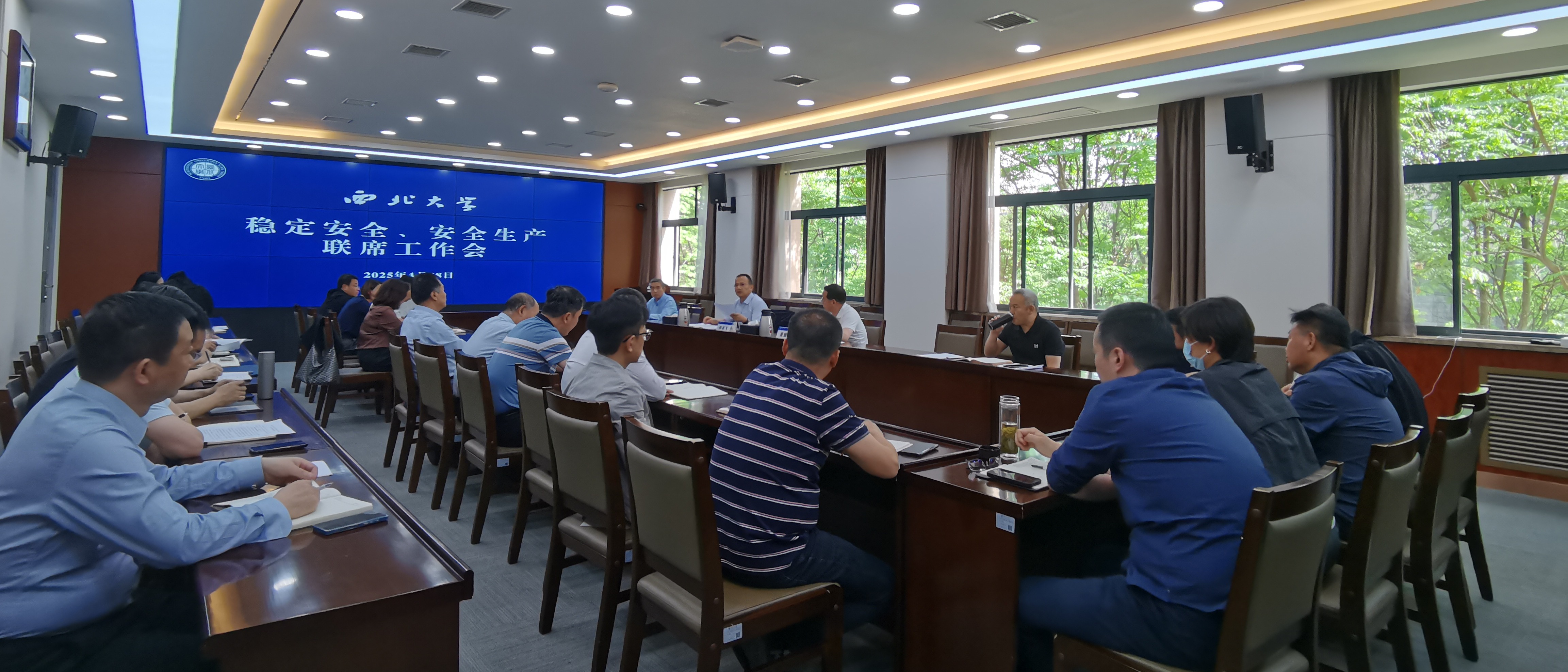 4月28日下午,学校在长安校区召开稳定安全、安全生产联席工作会,传达学习上级最新文件精神,安排部署“五一”前后相关工作。稳定办成员单位、安委会成员单位负责人参加会议。会议由校党委常委、副校长张志飞主持。会上,稳定办、统战部、保卫部负责人分别传达了上级最新文件精神,对重点工作作了安排部署。各成员单位负责人汇报了近期风险隐患排查和“五一”前后安全工作安排。张志飞强调,安全稳定是学校事业发展的基石,各单...