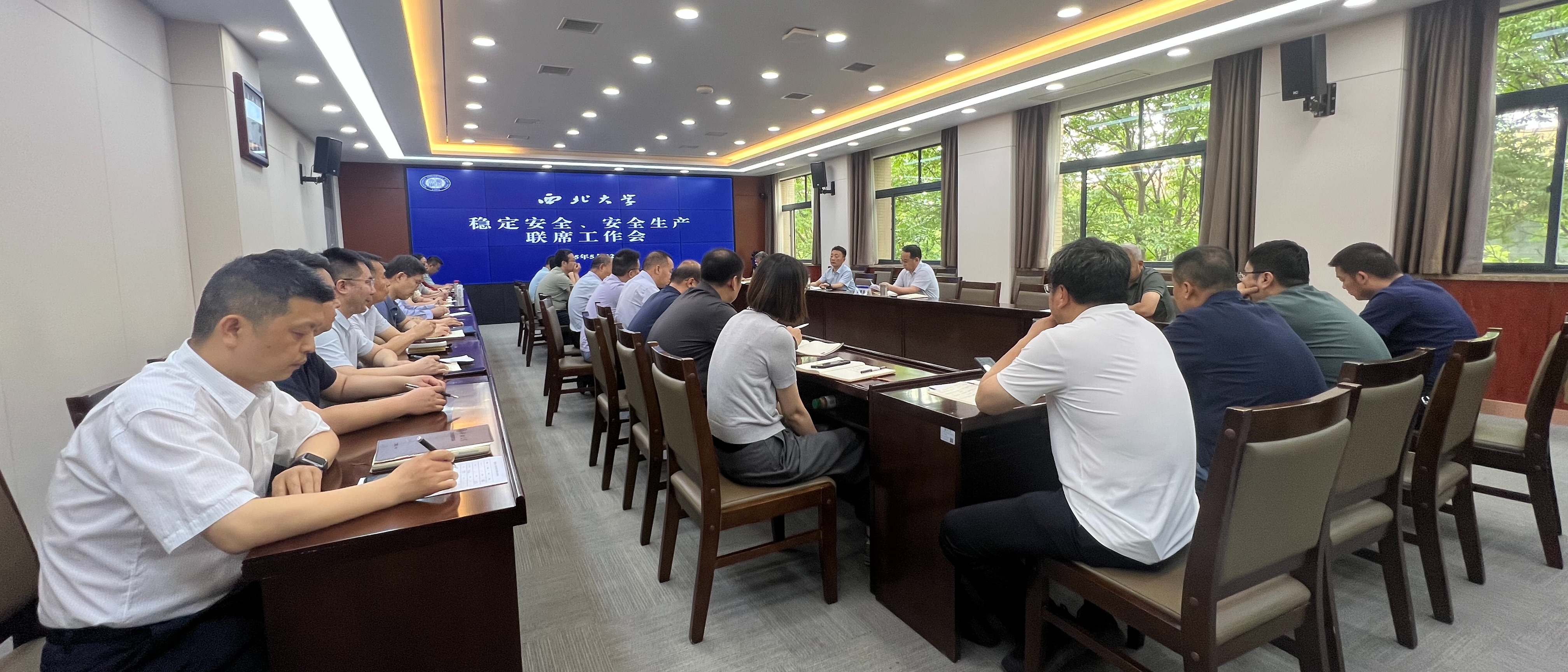 5月22日,学校在长安校区召开稳定安全、安全生产联席工作会,分析研判当前学校存在的各类风险隐患,安排部署下一阶段工作。稳定安全办公室成员单位负责人、安全生产委员会成员单位负责人参加会议。会议由校党委副书记赵作纽主持。会上,各成员单位汇报了近期风险隐患排查化解情况,针对目前存在的重点难点问题进行了讨论分析,明确了下一步工作计划;稳定办负责人、安委会办公室负责人就当前重要时间节点的相关工作作了再强调、...