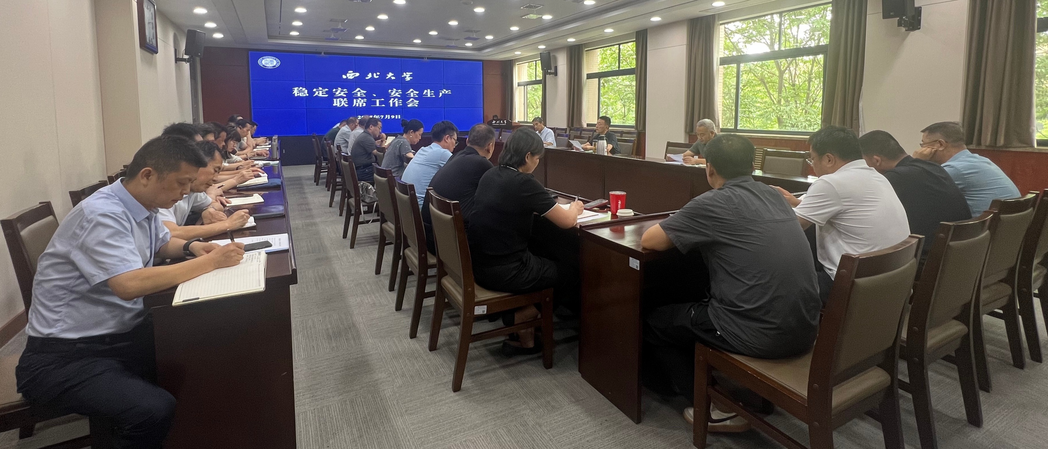 7月9日,学校在长安校区召开稳定安全、安全生产联席工作会,分析研判当前学校存在的各类风险隐患,安排部署暑期及下一阶段安全稳定工作。稳定安全办公室成员单位负责人、安全生产委员会成员单位负责人参加会议。会议由校党委副书记赵作纽主持。会上,稳定办负责人、安委会办公室负责人传达了上级最新相关文件精神,各成员单位汇报了近期风险隐患排查化解情况。赵作纽结合各单位排查出的突出问题,对相关化解处置工作作出安排。...