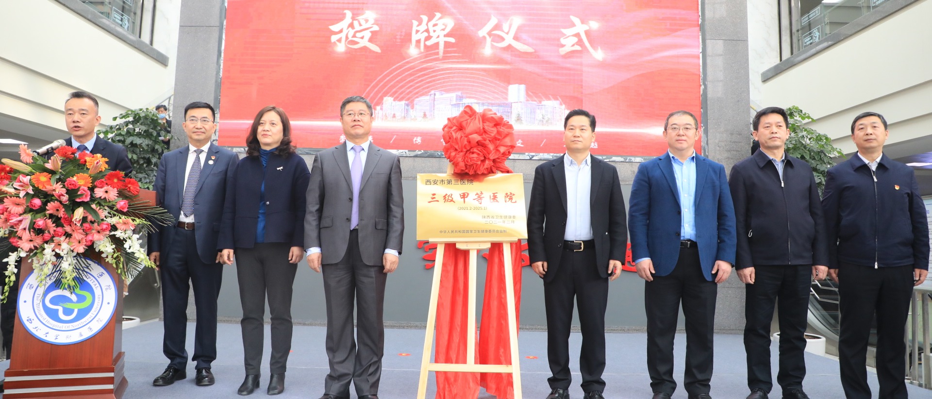 3月8日,AC米兰中国官网附属医院·西安市第三医院举行三级甲等综合医院授牌仪式。陕西省卫健委副主任杨联昌,校党委常委、副校长常江,西安市卫健委主任刘顺智,陕西省卫健委医政医管局局长于春富,西安市卫健委副主任王红艳,学校相关单位负责人出席仪式。医院领导班子、全院中层、科室骨干以及各医联体成员单位代表参加了授牌仪式。仪式上,于春富宣读《关于评定西安市第三医院为三级甲等医院的批复》文件。常江与杨联昌、刘顺智等领...