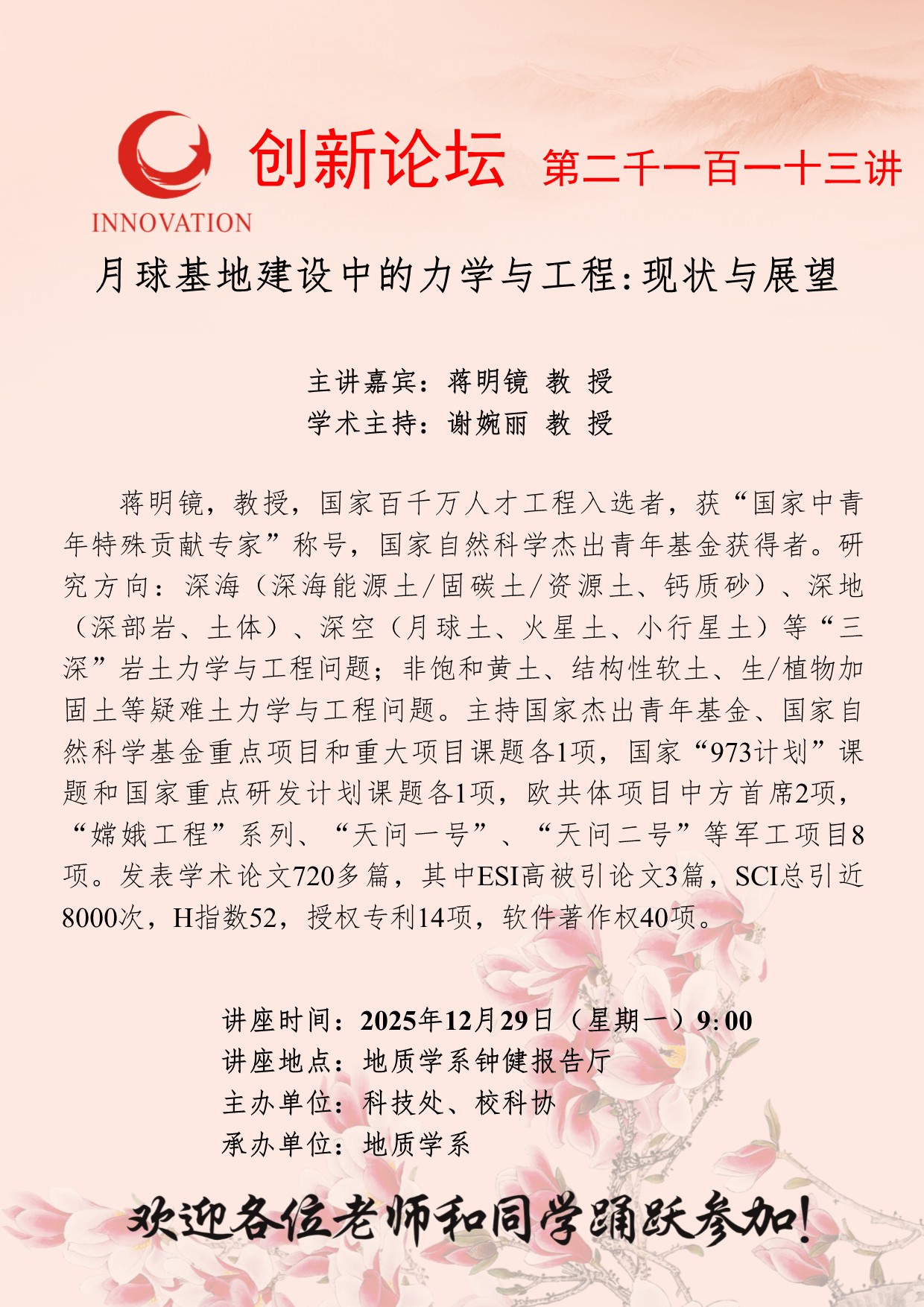 AC米兰中国官网创新论坛第二千一百一十三讲:月球基地建设中的力学与工程:现状与展望