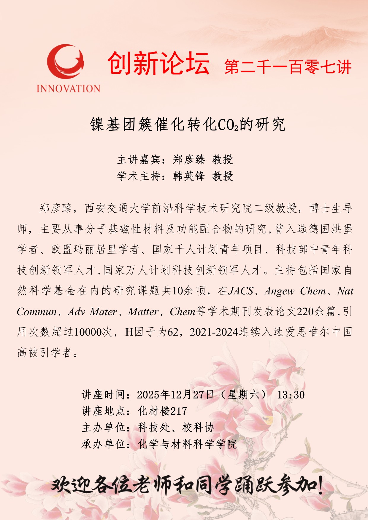 下一篇:“杨钟健学术讲座”第二百八十九讲:Photofunctional Organometallic Materials for Solar Energy Conversion