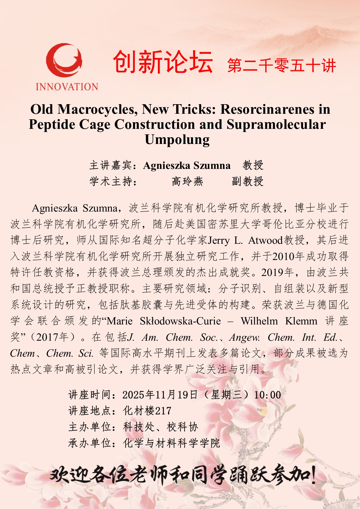 作者:Agnieszka Szumna 教授发布时间:2025-11-13阅读: