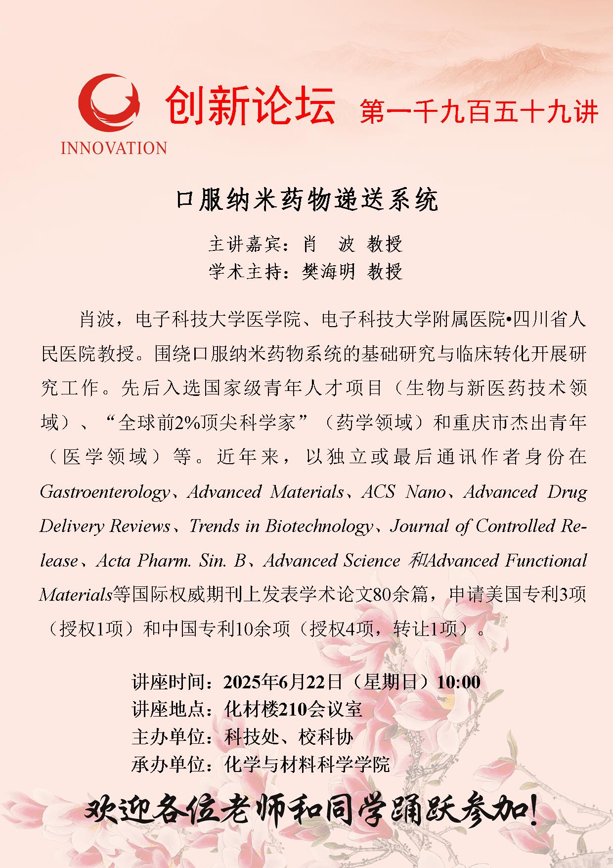 AC米兰中国官网创新论坛第一千九百五十九讲: 口服纳米药物递送系统