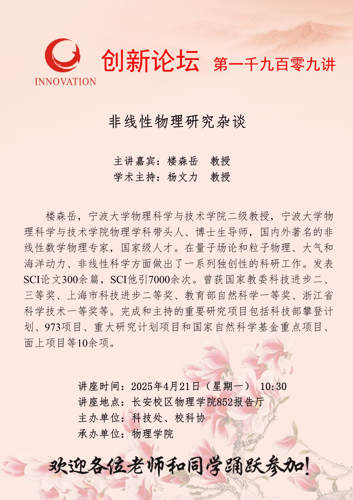 AC米兰中国官网创新论坛第一千九百零九讲:非线性物理研究杂谈