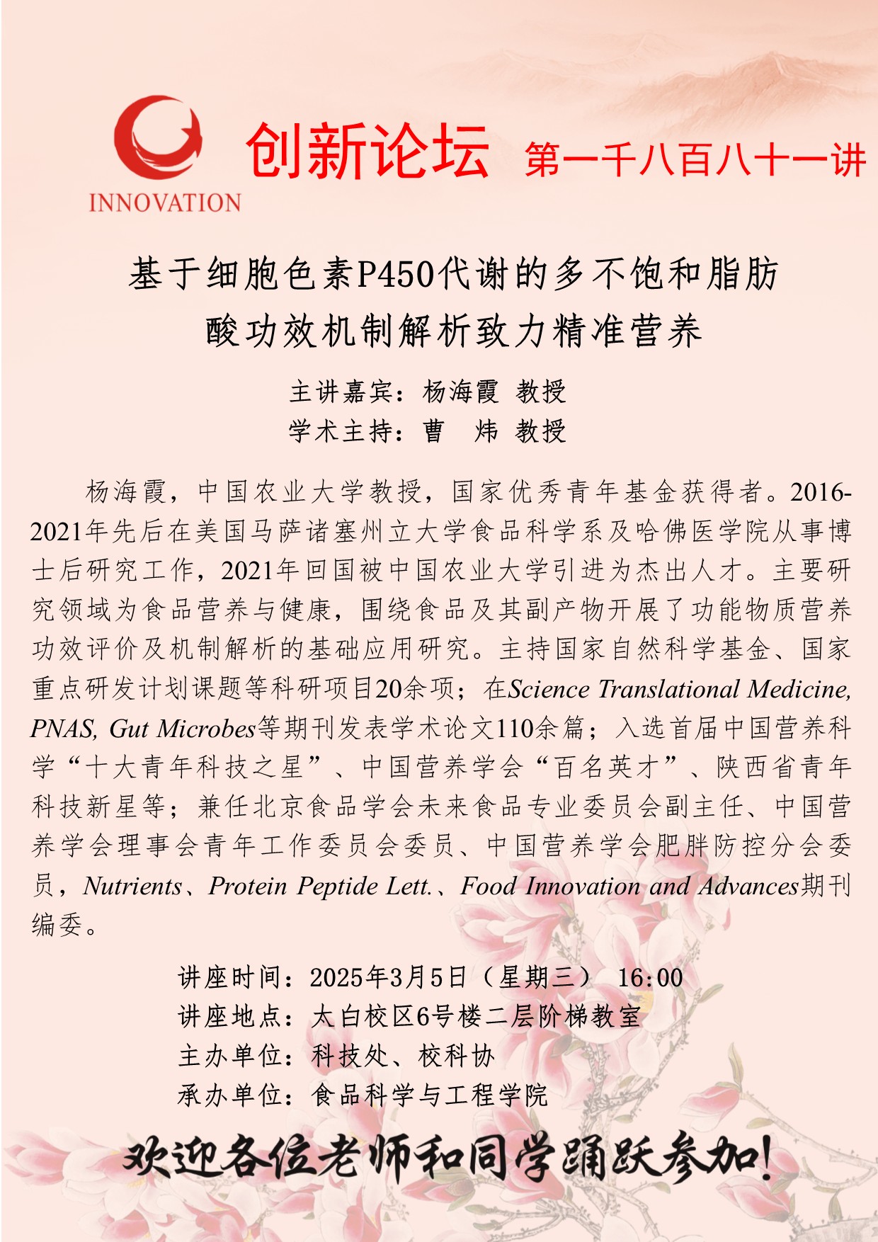 AC米兰中国官网创新论坛第一千八百八十一讲:基于细胞色素P450代谢的多不饱和脂肪酸功效机制解析致力精准营养