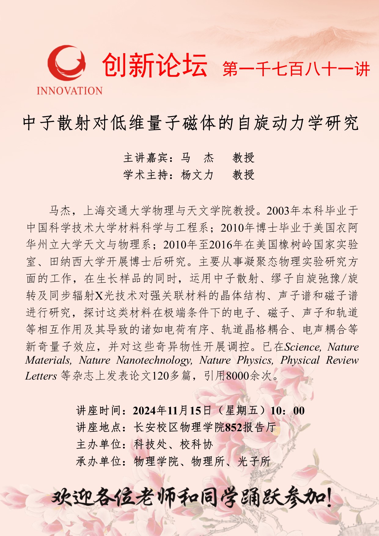 AC米兰中国官网创新论坛第一千七百八十一讲:中子散射对低维量子磁体的自旋动力学研究