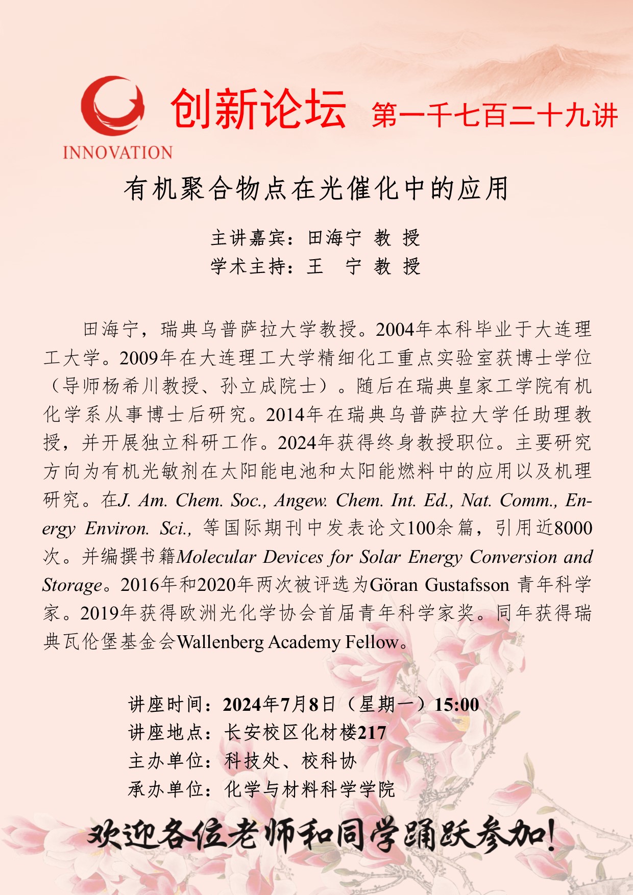 AC米兰中国官网创新论坛第一千七百二十九讲:有机聚合物点在光催化中的应用