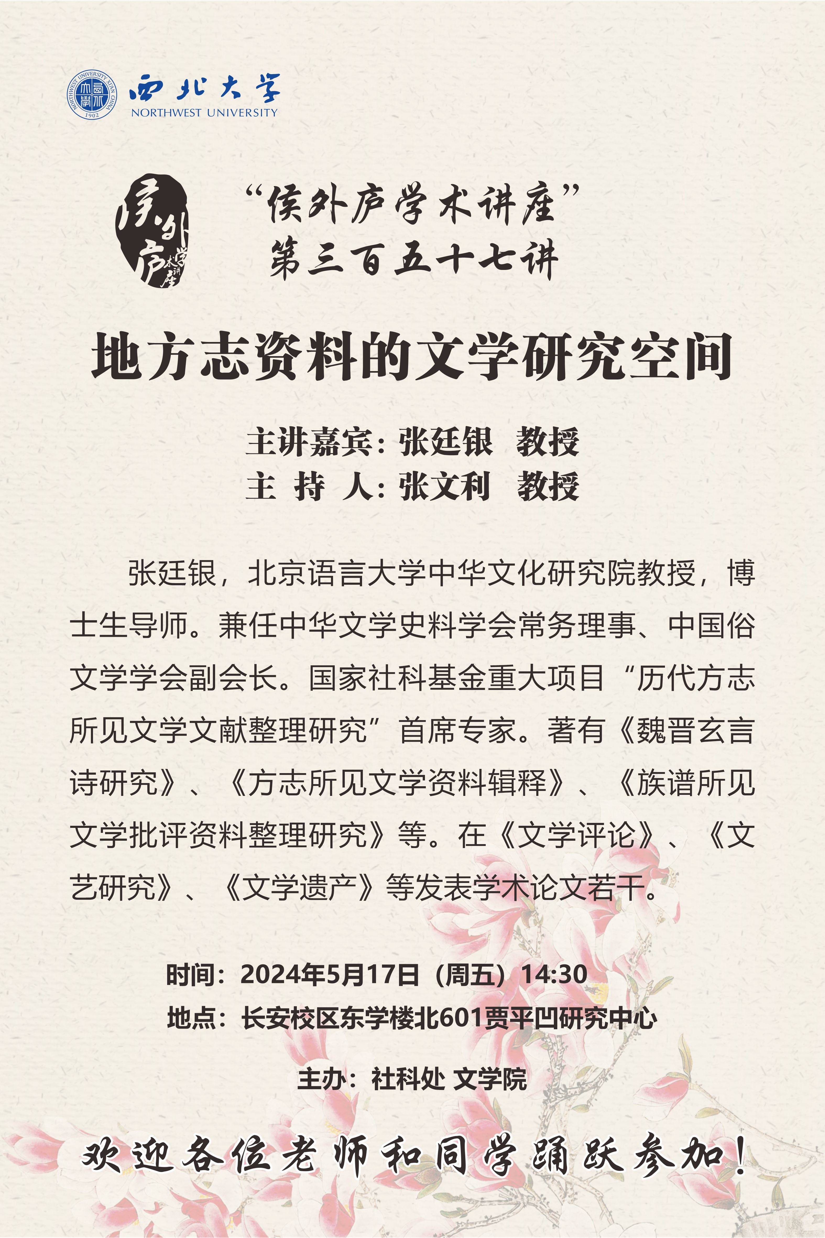 “侯外庐学术讲座”第三百五十七讲:地方志资料的文学研究空间