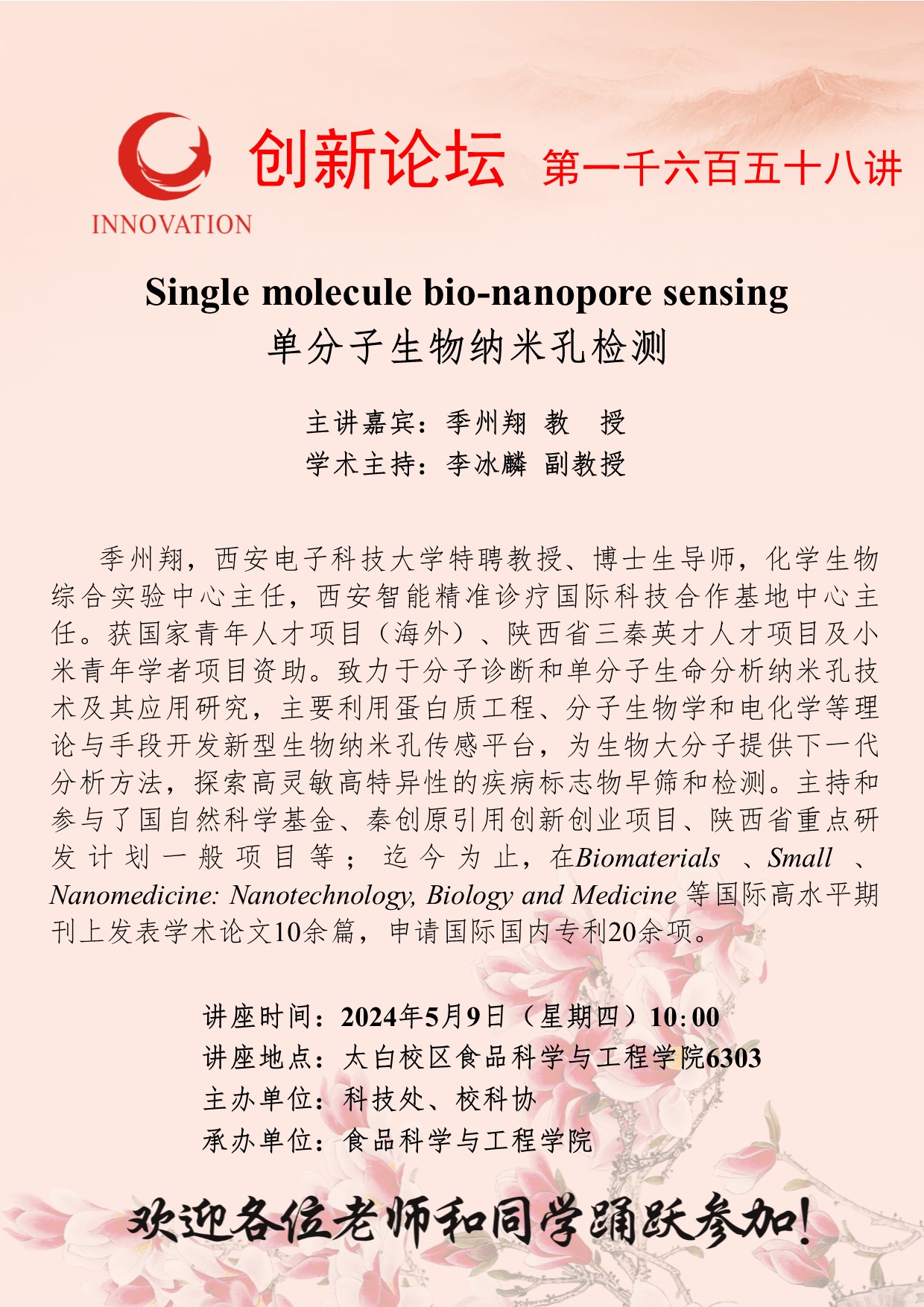 AC米兰中国官网创新论坛第一千六百五十八讲:Single molecule bio-nanopore sensing