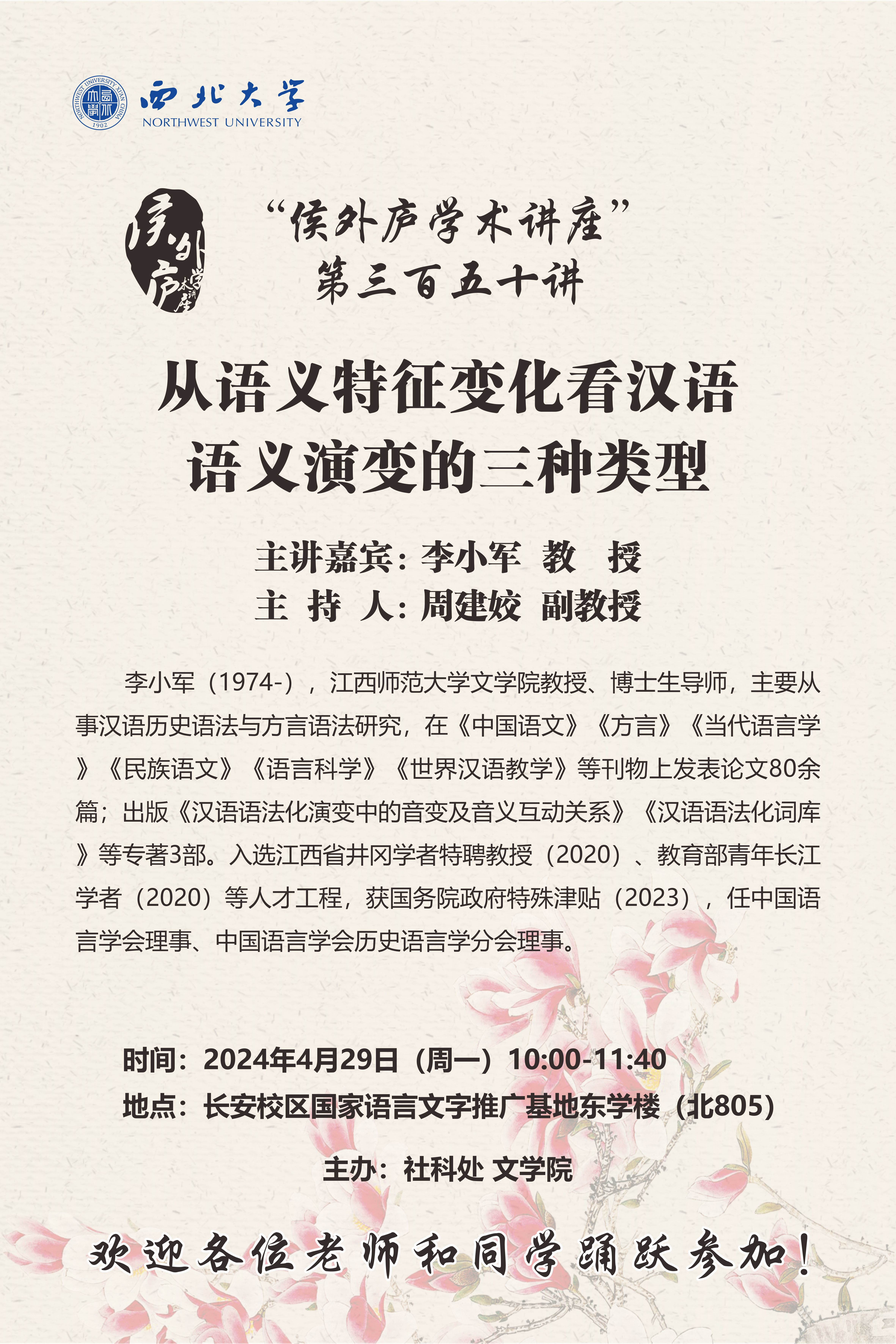 侯外庐学术讲座第三百五十讲:从语义特征变化看汉语语义演变的三种类型