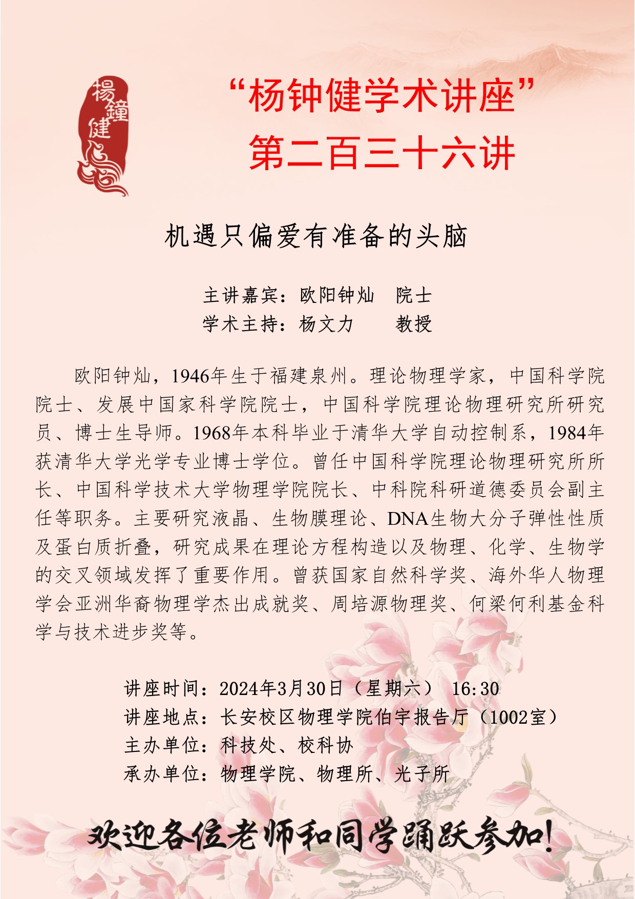 “杨钟健学术讲座”第二百三十六讲:机遇只偏爱有准备的头脑