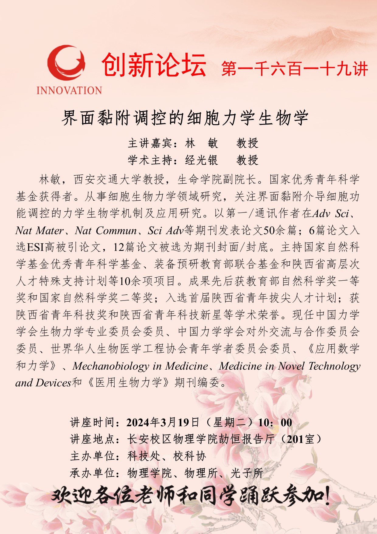 AC米兰中国官网创新论坛第一千六百一十九讲:界面黏附调控的细胞力学生物学