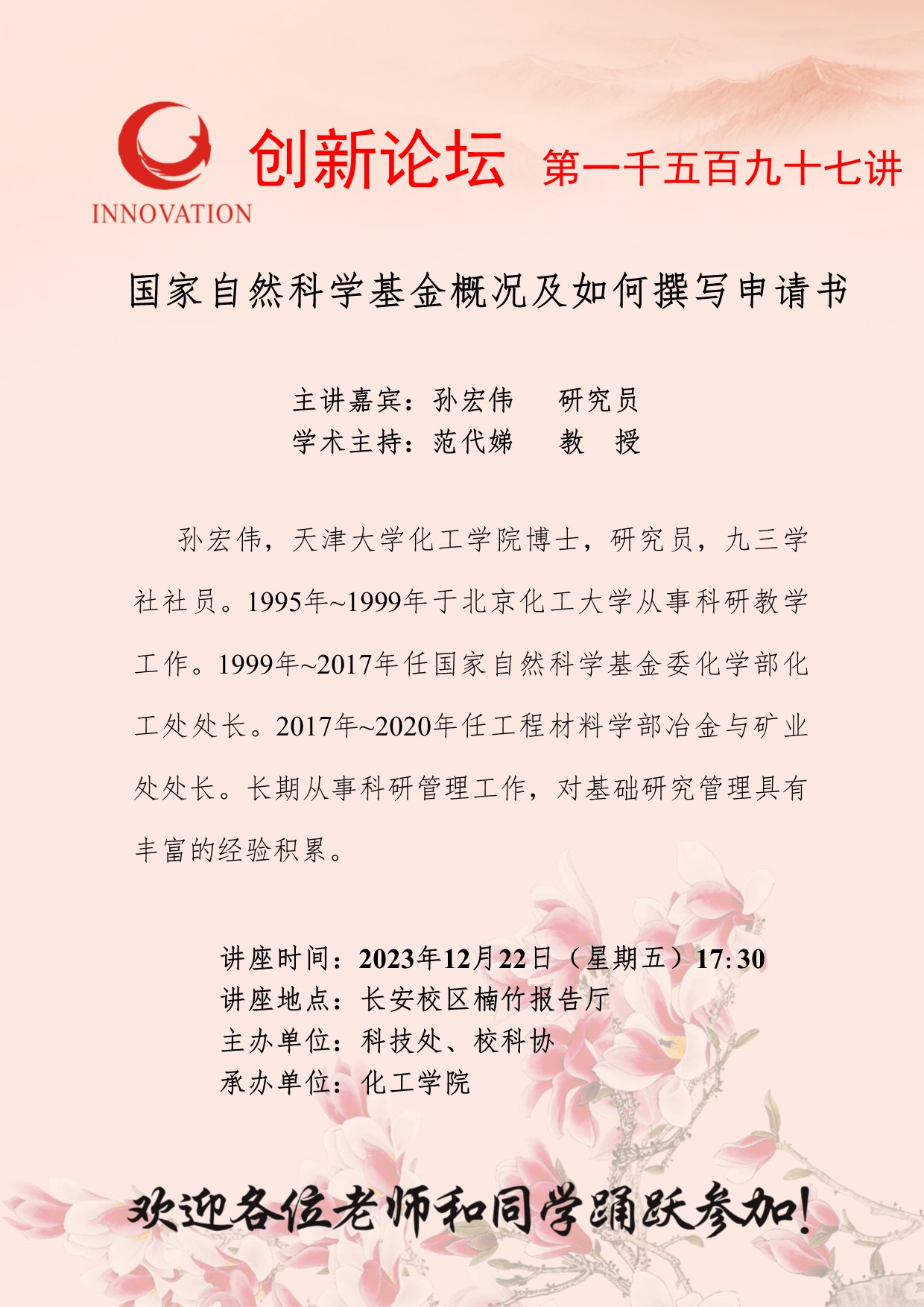 AC米兰中国官网创新论坛第一千五百九十七讲:国家自然科学基金概况及如何撰写申请书