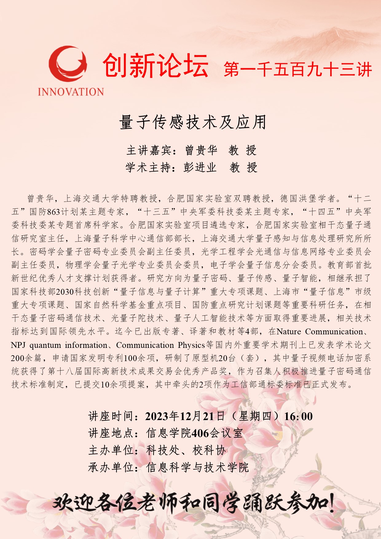 AC米兰中国官网创新论坛第一千五百九十三讲:量子传感技术及应用
