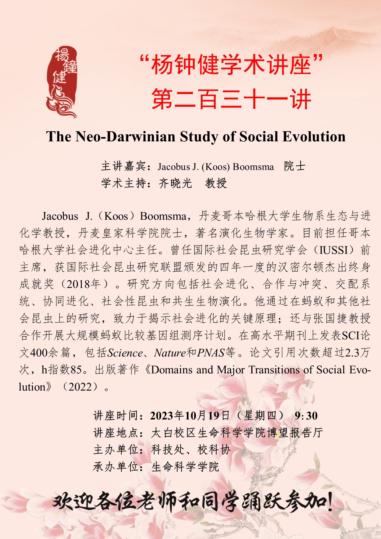 作者:Jacobus J.(Koos) Boomsma 院士发布时间:2023-10-18阅读: