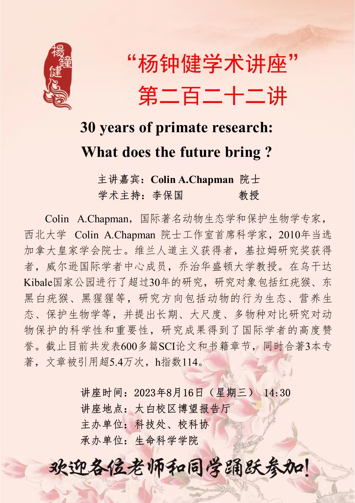 作者:Colin A.Chapman 院士发布时间:2023-08-14阅读: