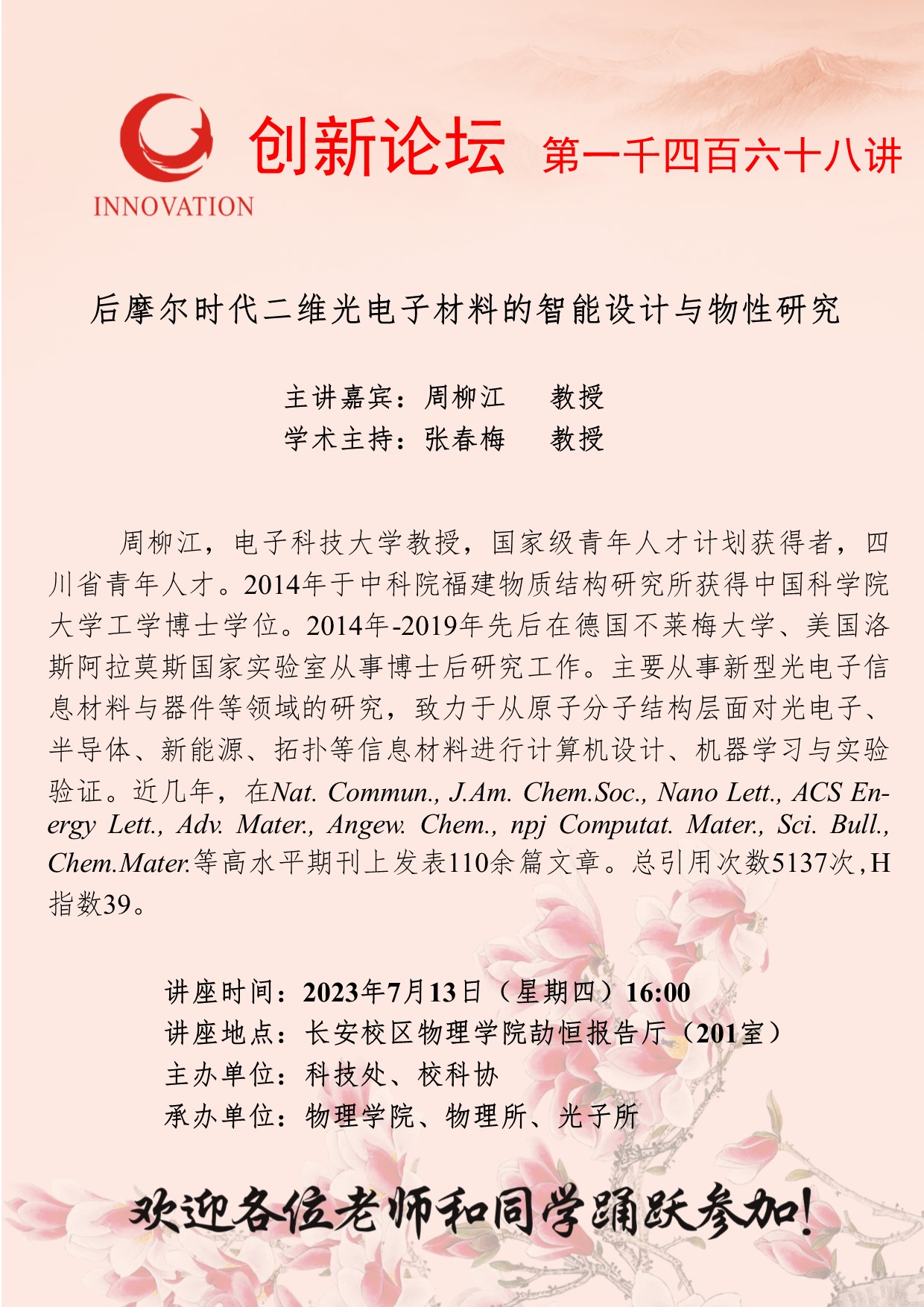 AC米兰中国官网创新论坛第一千四百六十八讲:后摩尔时代二维光电子材料的智能设计与物性研究