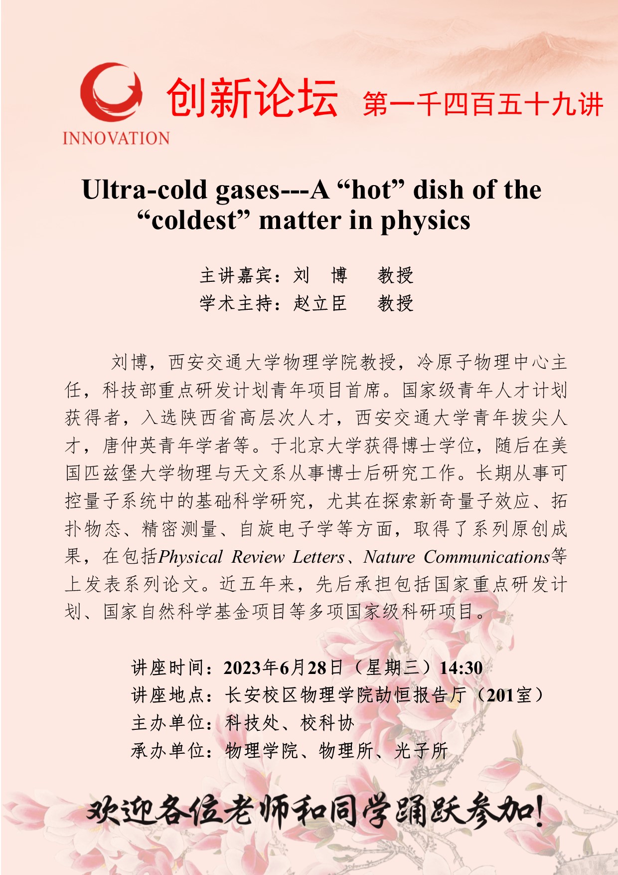 AC米兰中国官网创新论坛第一千四百五十九讲:Ultra-cold gases---A “hot” dish of the “coldest” matter in physics