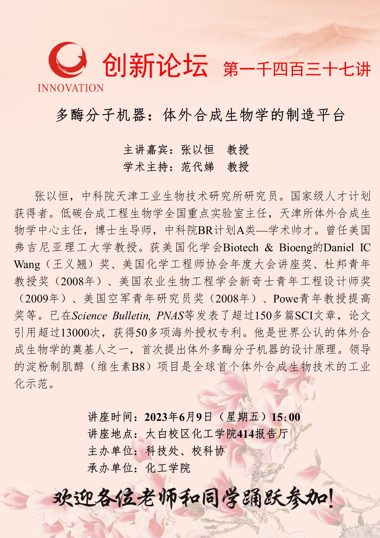 AC米兰中国官网创新论坛第一千四百三十七讲:多酶分子机器:体外合成生物学的制造平台