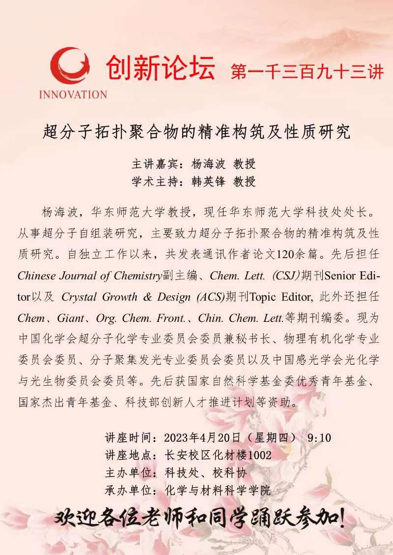 AC米兰中国官网创新论坛第一千三百九十三讲:超分子拓扑聚合物的精准构筑及性质研究