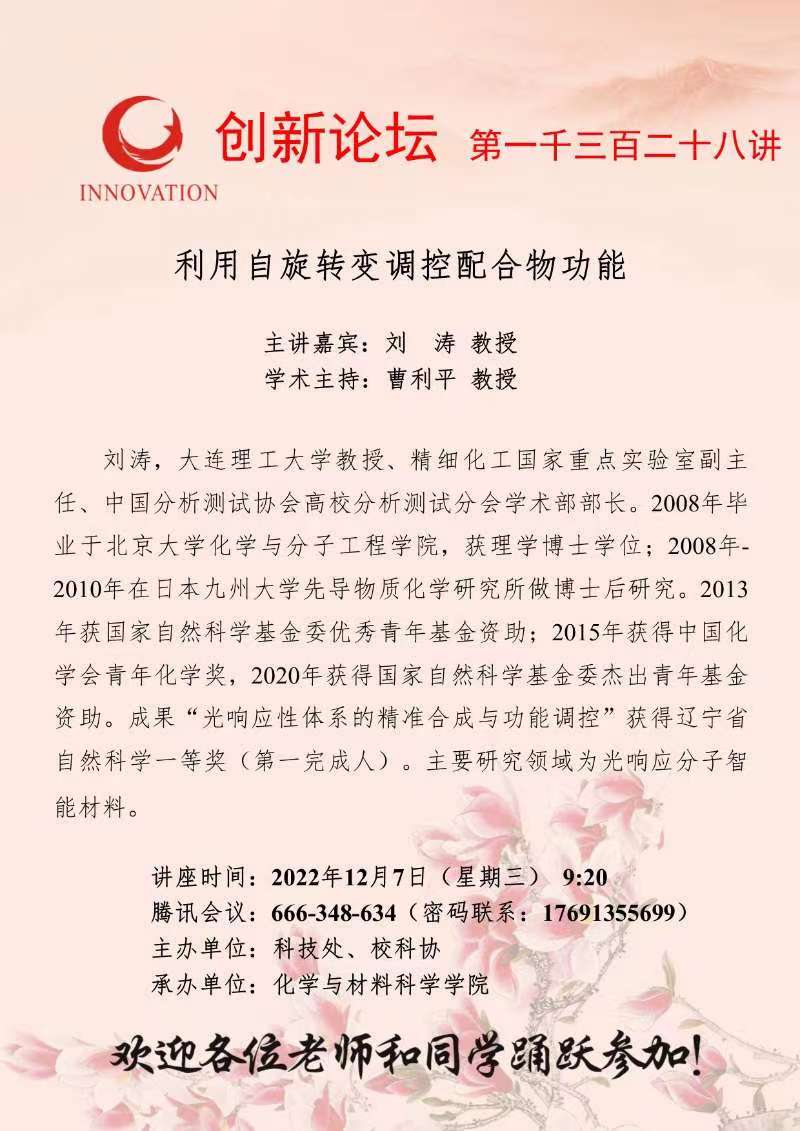 AC米兰中国官网创新论坛第一千三百二十八讲:利用自旋转变调控配合物功能