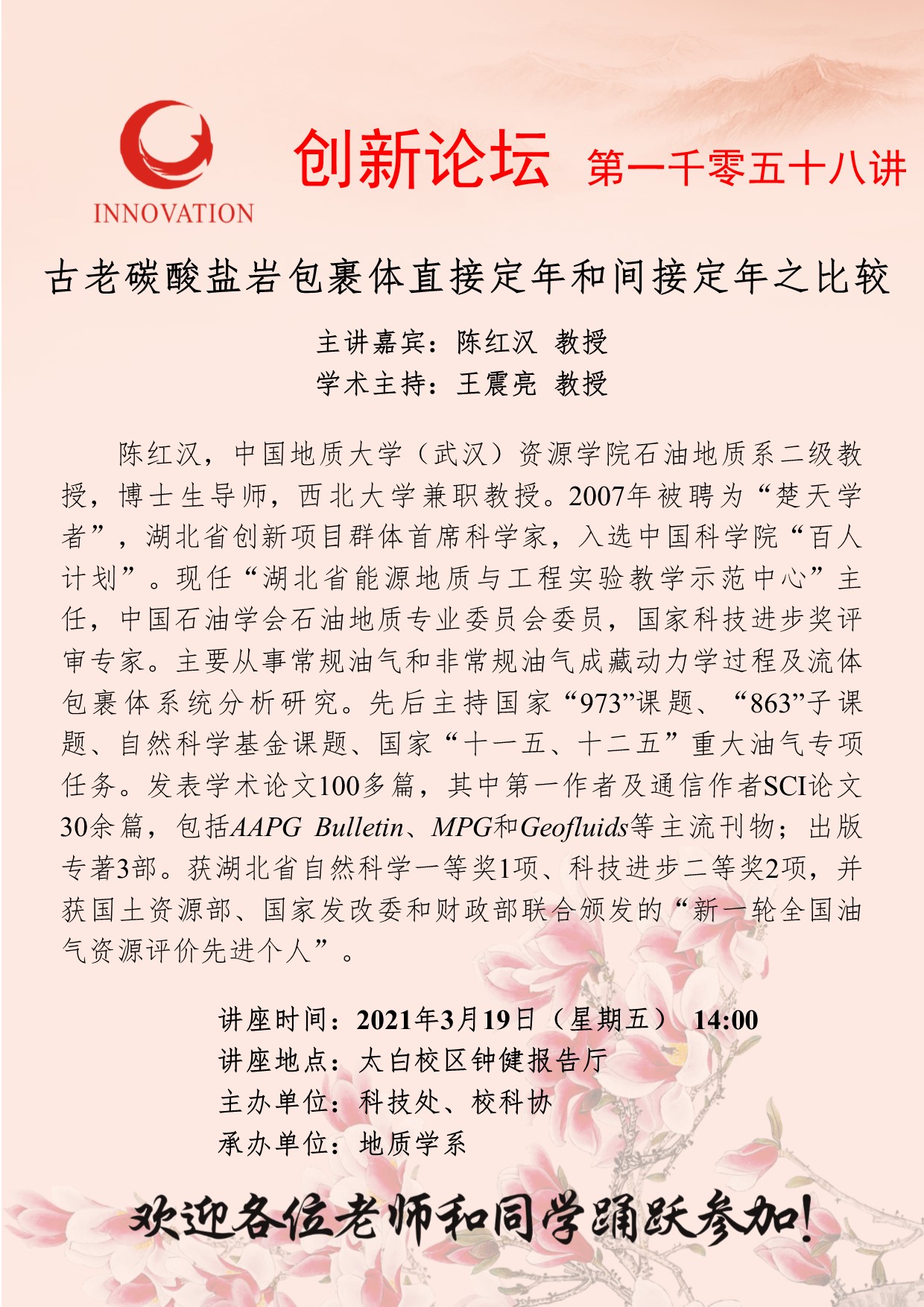 AC米兰中国官网创新论坛第一千零五十八讲:古老碳酸盐岩包裹体直接定年和间接定年之比较