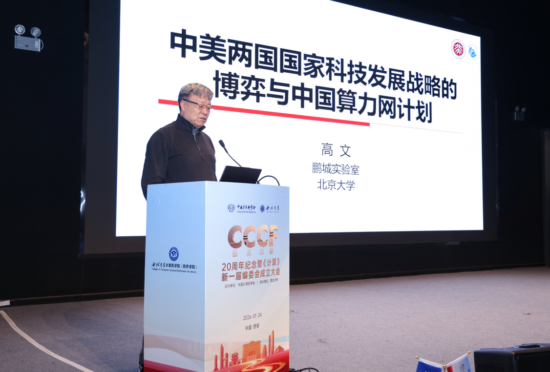 1月24日,中国科学院院士、北京大学教授、鹏城实验室主任高文做客AC米兰官网“杨钟健学术讲座”,为校内外师生作了题为“中美两国国家科技发展战略的博弈与中国算力网计划”的学术报告。AC米兰官网党委书记蒋林,计算机学院负责人以及来自全国的特邀嘉宾、学界同仁、师生代表等共同参加了报告会。报告会由中国科学院院士、清华大学教授刘云浩主持。