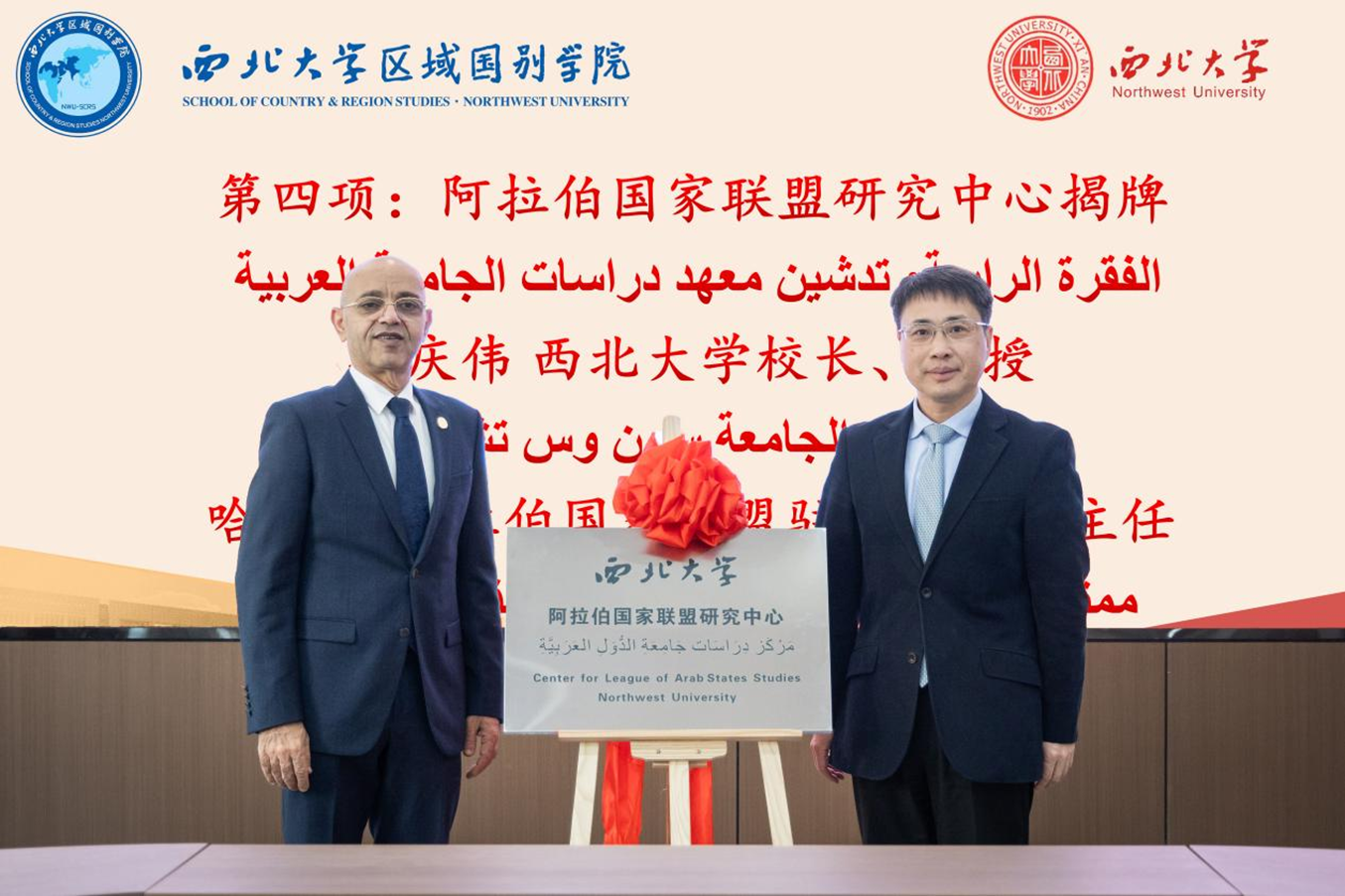 12月16日上午,阿拉伯国家联盟驻华代表处来校交流座谈。AC米兰官网校长孙庆伟出席座谈会,并与来访的阿拉伯国家联盟驻华代表处主任艾哈迈德·穆斯塔法·法赫米·哈菲兹(Ahmed Mustafa Fahmy Hafez)共同为AC米兰官网阿拉伯国家联盟研究中心揭牌。校党委常委、副校长范代娣主持座谈会,国际合作部、区域国别学院、外国语学院负责人及师生代表参加座谈。