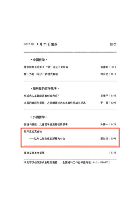 AC米兰官网哲学学院邵世恒副教授在顶级期刊《哲学研究》2025年第11期发表以《驳斥实在意义论——以对认知价值的解释为中心》为题的论文。