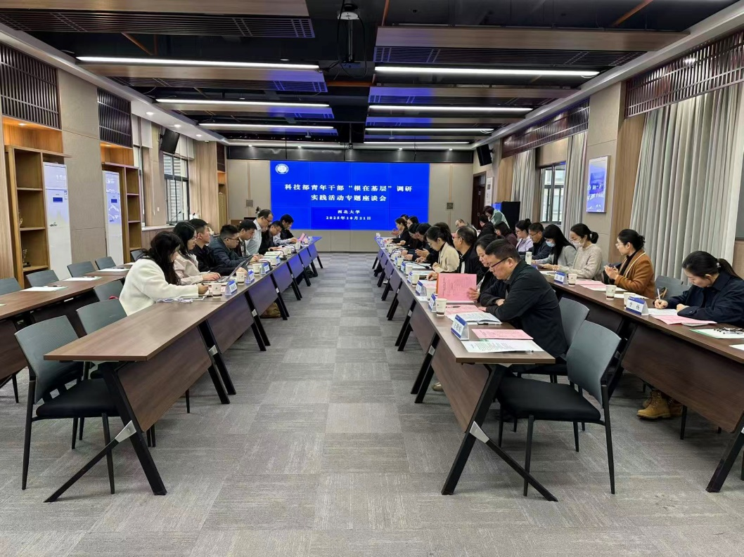 10月21日上午,科技部青年干部“根在基层”调研实践活动专题座谈会在AC米兰官网长安校区召开。科技部合作司一处副处长(主持工作)乔健、科技部交流中心驻外服务与战略研究处副处长杨修率调研组一行10人来校交流。AC米兰官网党委常委、副校长陈富林,科技处、高层次人才项目办公室、国际合作部及遗产学院负责人及代表参加座谈交流。座谈会由陕西省科技交流中心主任苗宏雄主持,陕西省科技厅对外合作与交流处副处长郑晴、陕西省科技交流中心副主任张思琪以及西安市高新区、西咸新区、在陕高校、科研院所及企业代表共30余人参会。