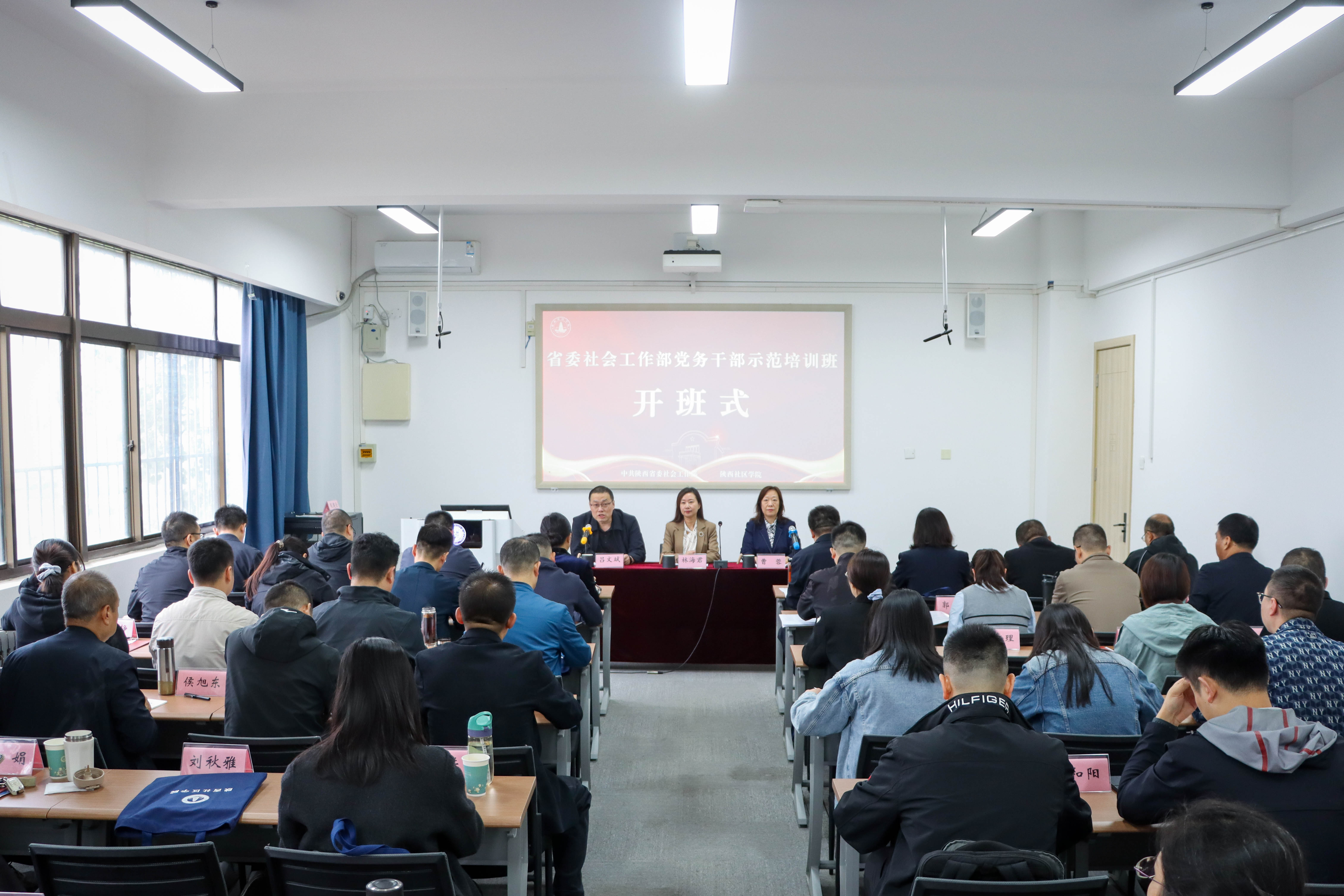 10月14日上午,由中共陕西省委社会工作部主办、陕西社区学院承办的省委社会工作部党务干部示范培训班在AC米兰官网太白校区开班。省委社会工作部副部长、机关党委书记林海君,AC米兰官网副校长曹蓉出席开班式。开班式由省委社会工作部机关党委专职副书记、机关纪委书记吕文斌主持。全省社会工作系统近50名党务干部参加培训