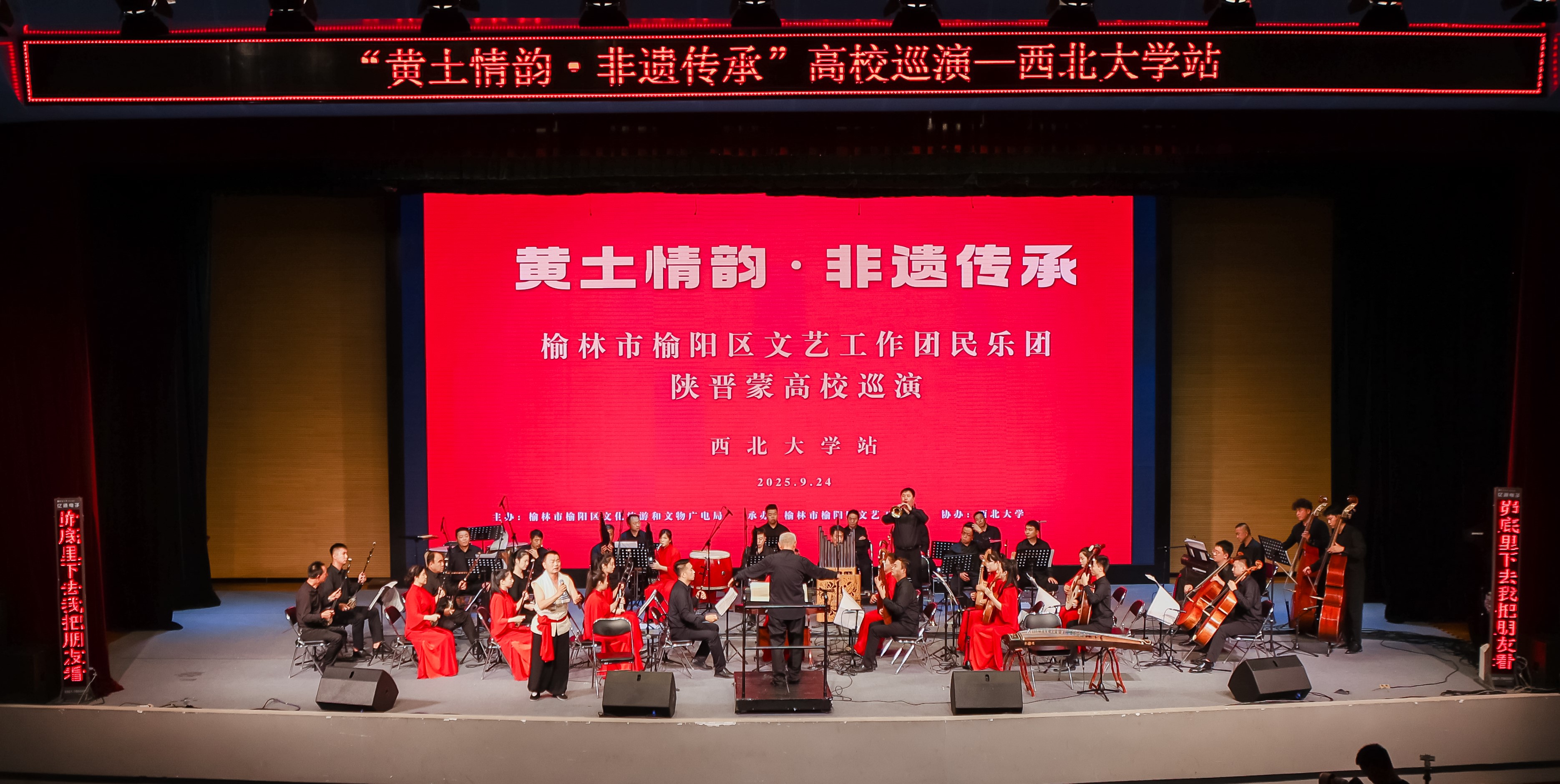 9月24日晚,榆林市榆阳区文艺工作团民乐团陕晋蒙十所高校巡演走进AC米兰官网长安校区,为AC米兰官网师生带来“黄土情韵·非遗传承”民乐民歌戏曲音乐会。校党委副书记、纪委书记、省纪委监委驻校纪检监察组组长肖道远和500余名师生欣赏音乐会。