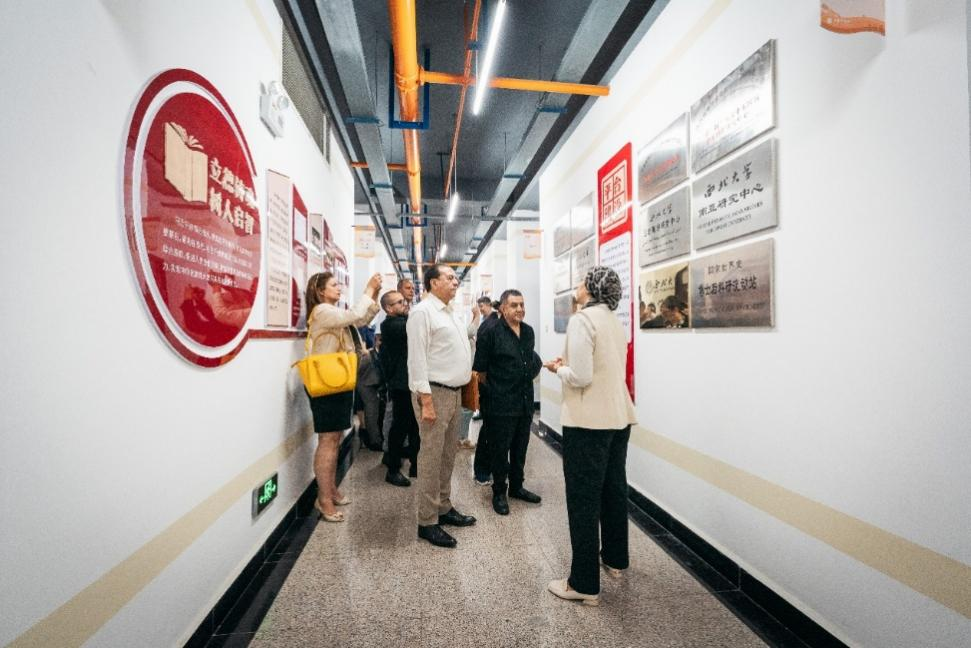 高进孝肯定了学校在中阿产学研方面所取得的成绩,他指出,加强中阿间“产学研”深度融合需要充分发挥高校的科研创新优势、企业的市场化运作经验与媒体的立体传播效能,通过构建多方协同机制形成发展合力。他希望此次阿方媒体学者代表团来访陕西,能够成为深化中阿人文交流与合作的新契机,为两国间资源共享与优势互补创造新的机遇。