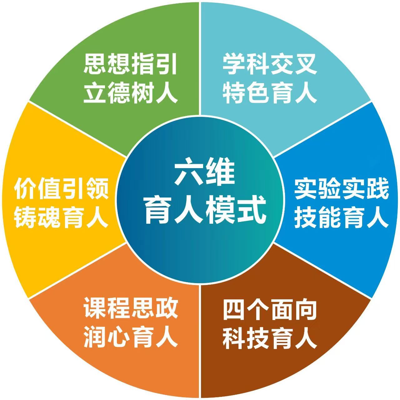 “六维育人模式”概括了学院本科人才培养的特色路径。这一模式是学院落实立德树人根本任务、实现人才培养目标的行动框架。