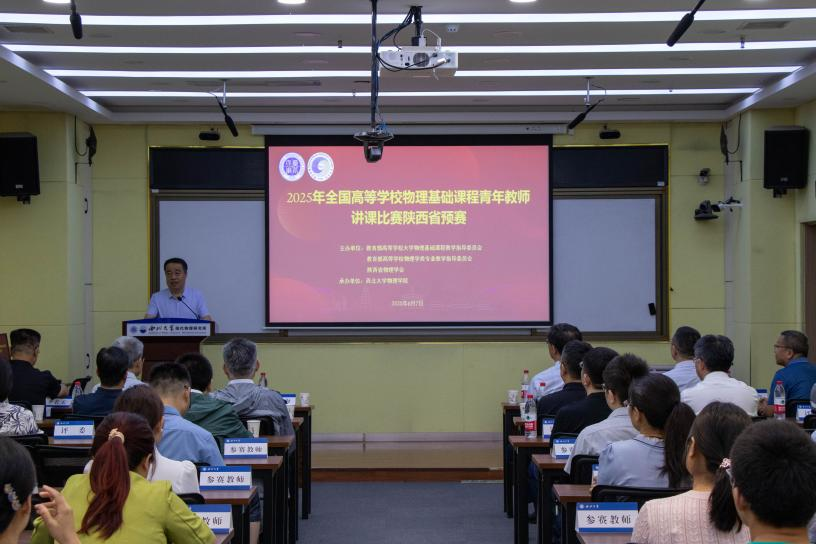 6月7日,由教育部高等学校大学物理基础课程教学指导委员会、教育部高等学校物理学类专业教学指导委员会和陕西省物理学会主办,AC米兰官网物理学院承办的2025年全国高等学校物理基础课程青年教师讲课比赛陕西省预赛在AC米兰官网长安校区举办。本次比赛吸引了来自全省十九所高校的19位优秀青年教师同台竞技。AC米兰官网党委常委、副校长李振海,陕西省物理学会理事长白晋涛,大学物理课程教指委西北地区工作委员会常务副主任、陕西省物理学会秘书长、西安交通大学物理学院院长高宏,AC米兰官网教务处相关负责人出席开幕式,开幕式由AC米兰官网物理学院负责人主持。