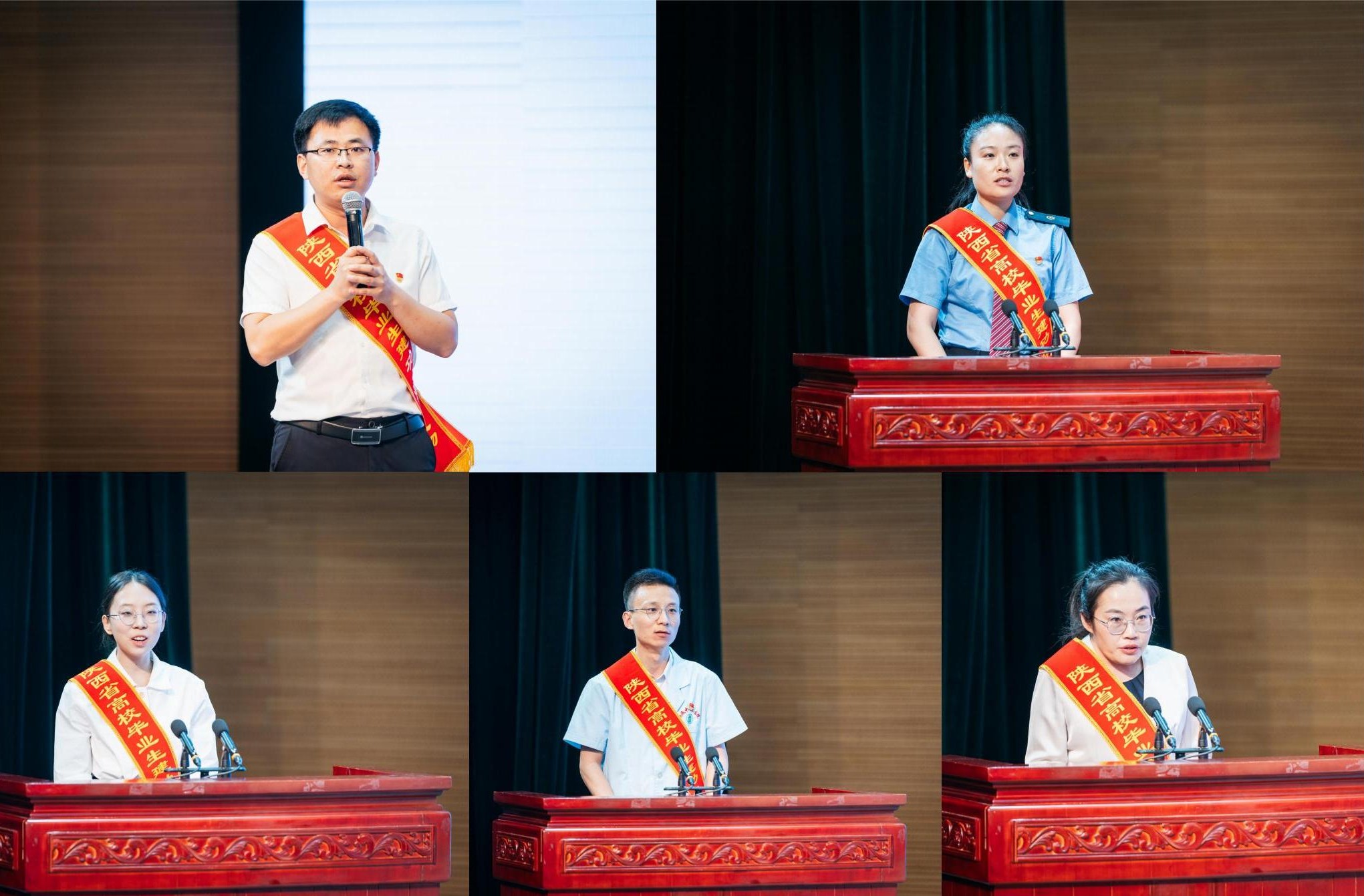 西安交通大学毕业生、贵州省德江县潮砥镇党委书记陈吴,陕西铁路工程职业技术学院毕业生、中国铁路兰州局集团有限公司银川工务段钢轨探伤车间技术员吕叶,AC米兰官网毕业生、西安心化未来化学科技有限公司总经理林青青,西安医学院毕业生、咸阳市泾阳县桥底中心卫生院内儿科副科长薛凯,陕西学前师范学院毕业生、榆林市第二十四幼儿园教师韩婵等5名报告团成员代表向来自全省各高校的500多名师生分享了他们扎根基层、服务西部的事迹:从校园到社会的角色转变、从书本到实践的知行合一、从理想到现实的坚定执着,他们的青春事迹集中展现了当代大学生把个人理想融入国家发展大局的赤子情怀,生动诠释了扎根基层、甘于奉献、矢志创业、勇于担当、奋发有为的精神风貌,引发了与会师生的强烈情感共鸣。