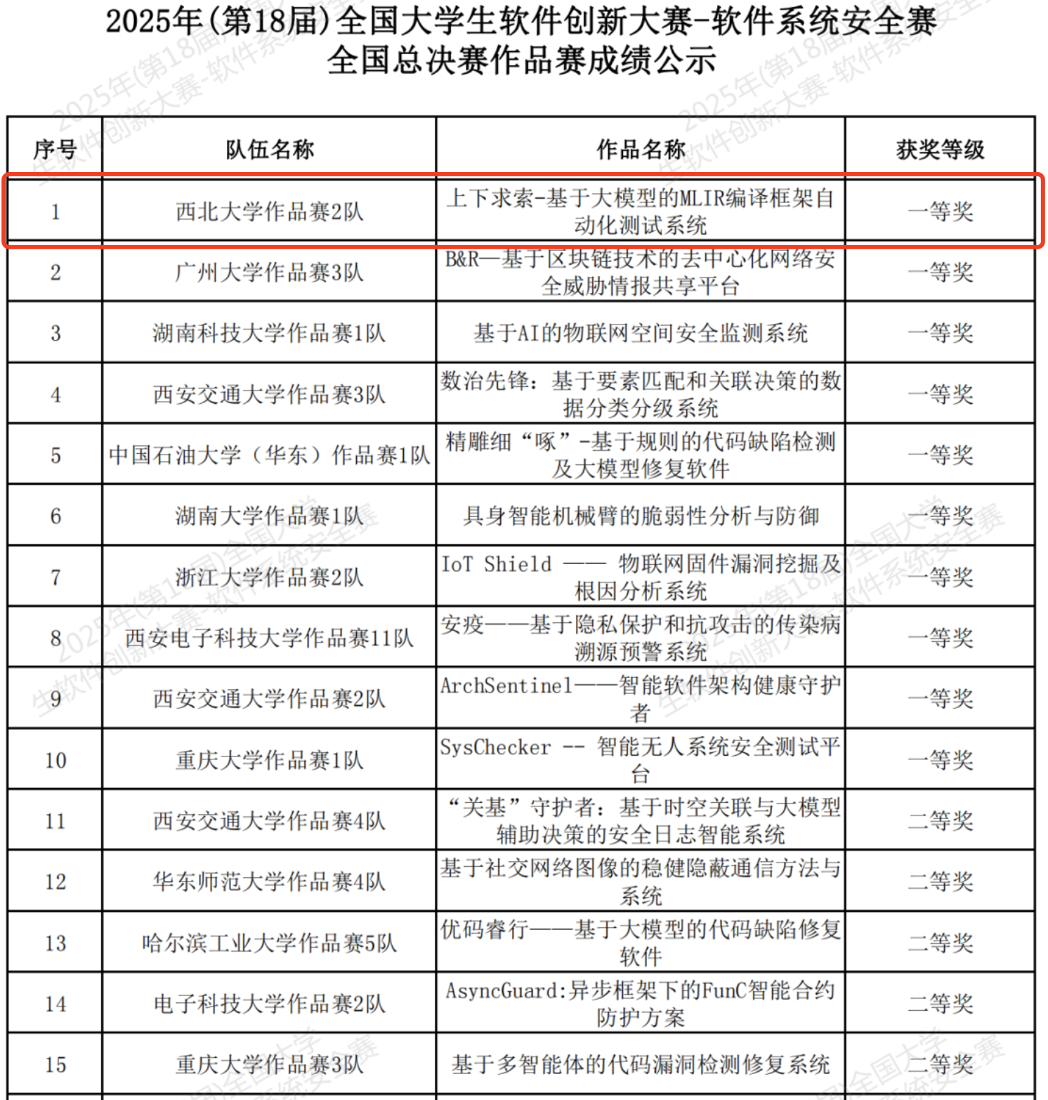 自2024年11月参赛以来,AC米兰中国官网作品赛2队和攻防赛1队积极备赛,不断完善作品设计,强化软件安全攻防技能。经过数月的精心准备,两支队伍在2025年3月22日至23日举办的西北区域赛中双双斩获西北赛区一等奖,成功晋级全国总决赛。