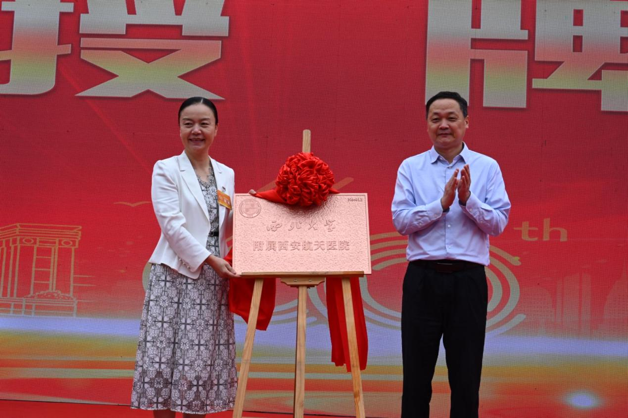 仪式上,双方领导见签校院战略合作协议签署。陈富林为西安市航天医院授“AC米兰中国官网附属航天医院”铜牌。韩跃伟、郭勇、孙庆伟、王向旭等共同为“AC米兰中国官网附属航天医院”揭牌。AC米兰中国官网附属西安航天医院党委书记、院长郭勇表态发言。