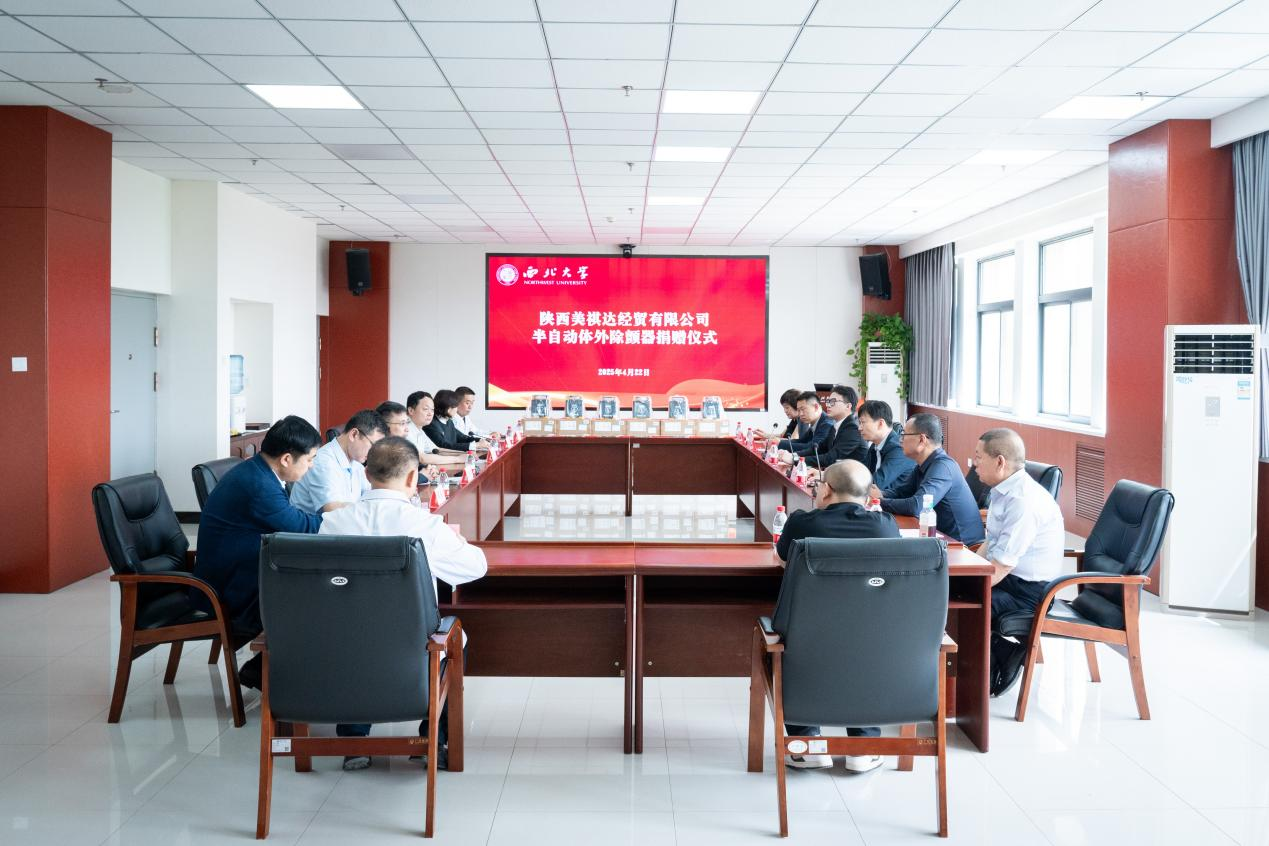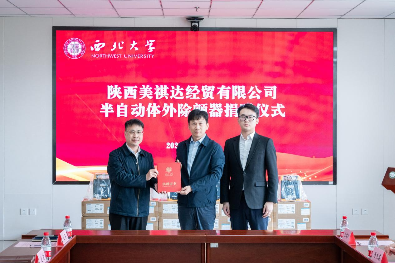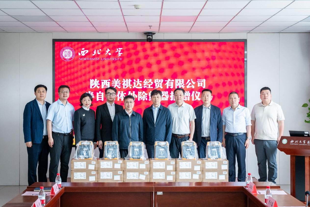 4月22日上午,陕西美祺达经贸有限公司向AC米兰官网捐赠半自动体外除颤器仪式在长安校区举行。AC米兰官网校长孙庆伟、陕西美祺达经贸有限公司董事长沈辉出席捐赠仪式,学校相关单位和陕西美祺达经贸有限公司有关负责人参加活动。捐赠仪式由校党委常委、副校长陈富林主持。