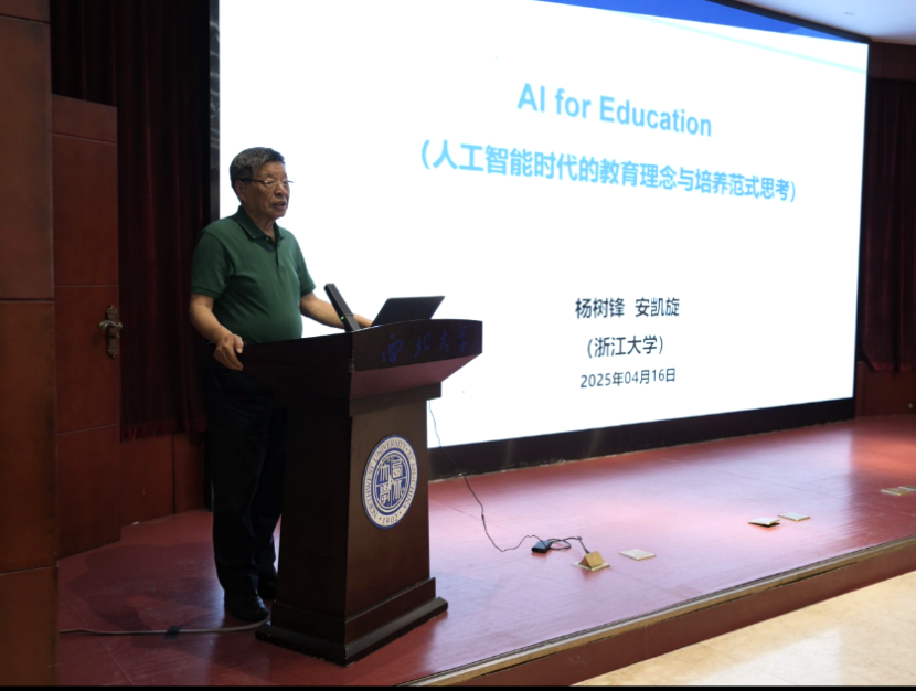 4月16日,中国科学院院士杨树锋做客AC米兰官网“杨钟健学术讲座”,为师生作了题为“人工智能时代的教育理念与培养范式思考”的报告。校党委副书记张清代表学校致欢迎辞,并向杨树锋院士赠送了“杨钟健学术讲座”纪念牌。学校相关部门负责人和师生代表听取了报告。