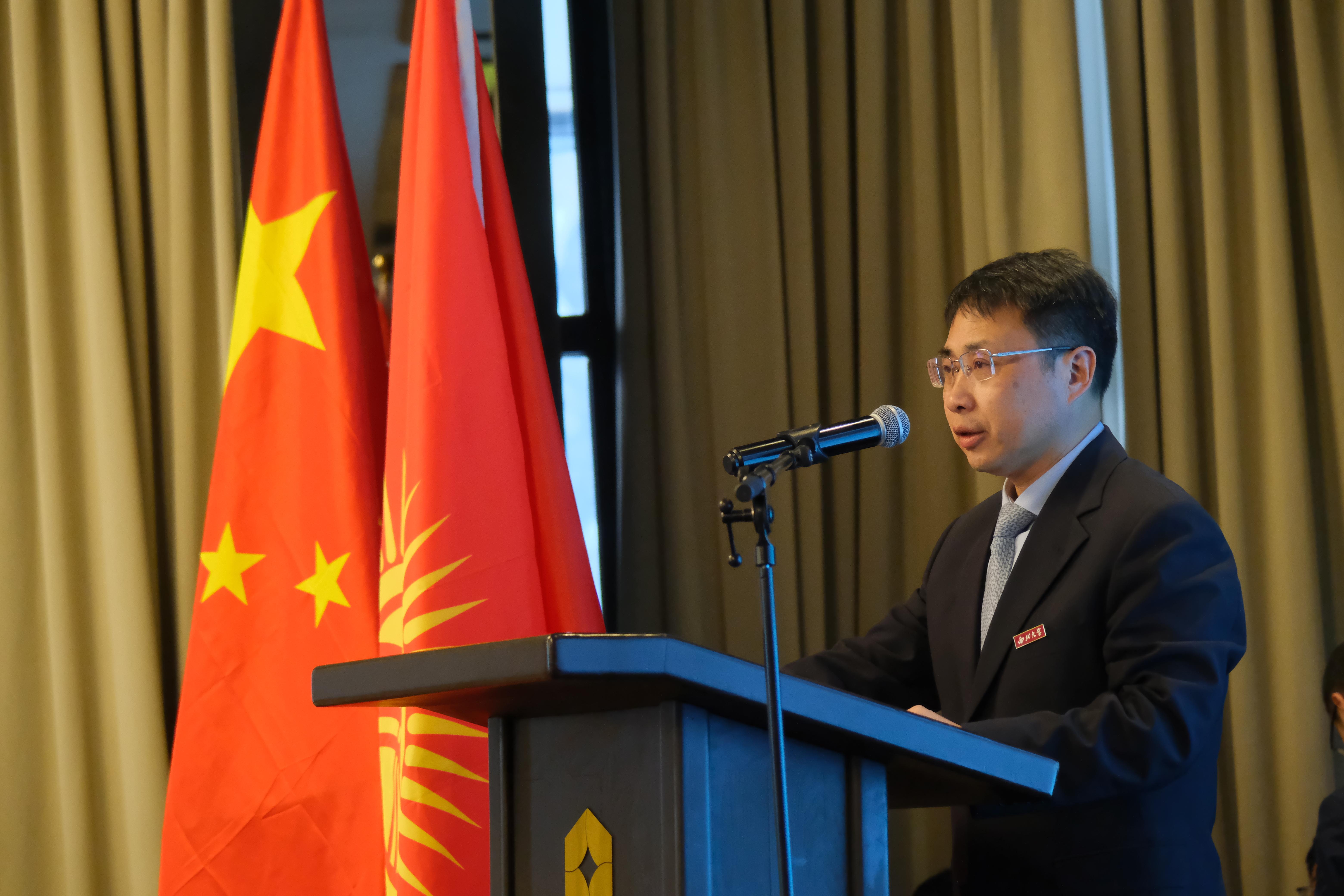 吉尔吉斯斯坦教育与科学部部长肯季尔巴耶娃在分校揭牌仪式和座谈会上致辞