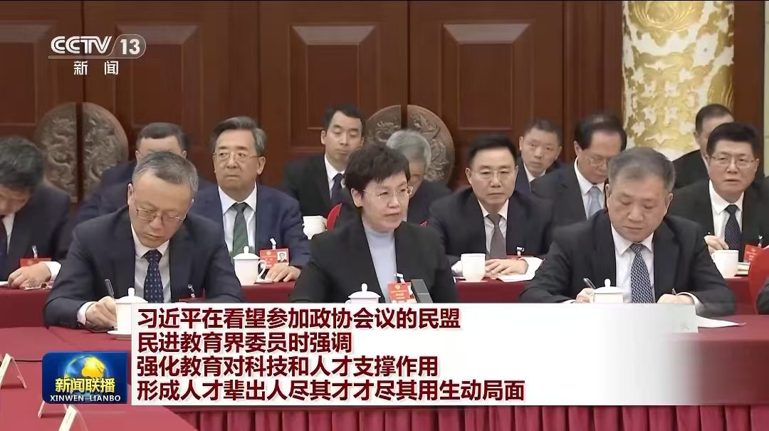 3月6日下午,习近平总书记看望参加全国政协十四届三次会议的民盟、民进、教育界委员并参加联组会时发表重要讲话,为建设教育强国、科技强国、人才强国指明前进方向,凝聚奋进力量。联组会上,张运凯、蔡光洁、郑家建、徐坤、崔亚丽、马景林等6位委员,围绕推进职业教育与区域产业协同发展、优化基础教育资源配置、打造儿童青少年阅读生态、推进国家教育智联网建设、推进教育科技人才一体发展、依托学校课程弘扬传统文化等作了发言。
