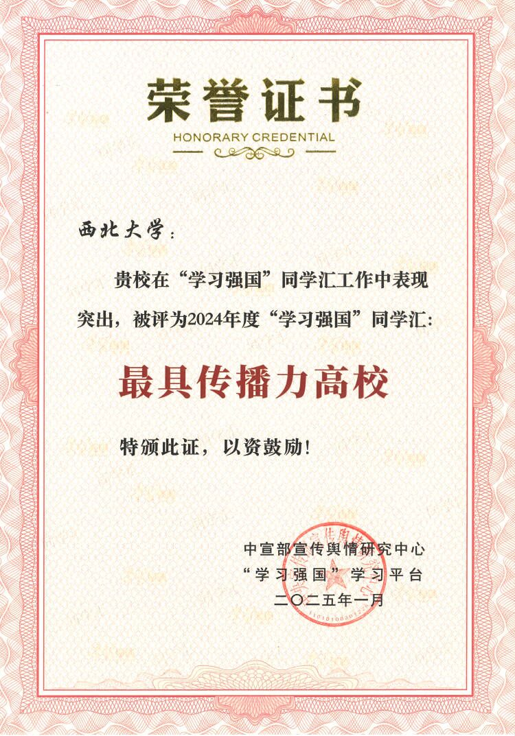 近日,中宣部宣传舆情研究中心、“学习强国”学习平台公布了表彰结果。AC米兰官网获2024年度同学汇“最具传播力高校”,2件作品入选人气作品。
