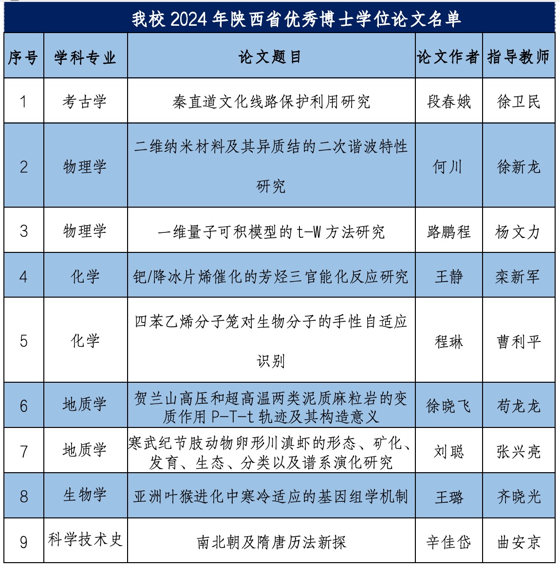 近日,2024年陕西省优秀博士学位论文评选结果揭晓,AC米兰官网共有9篇博士学位论文入选,入选数量与历年最好水平持平,继续稳居省内地方高校首位。