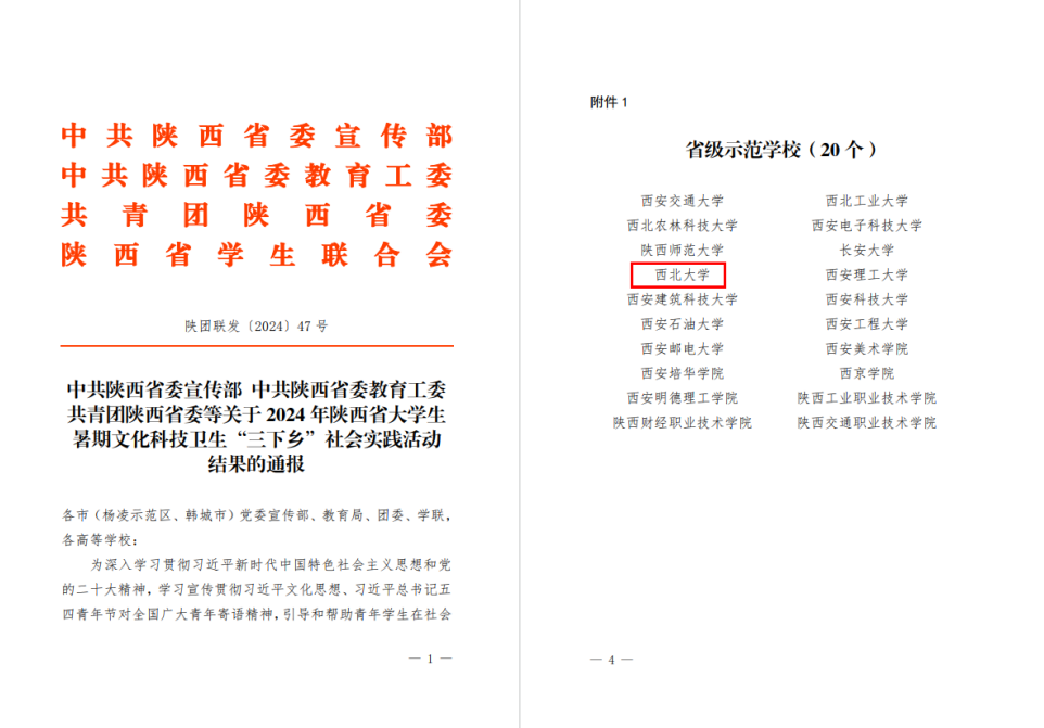 近日,中共陕西省委宣传部、中共陕西省委教育工委、共青团陕西省委下发了《关于2024年陕西省大学生暑期文化科技卫生“三下乡”社会实践活动结果的通报》,AC米兰官网获得“省级示范学校”,AC米兰中国官网“百企千村万户——大国西部:习近平经济思想的生动实践”实践团获得“省级标兵团队”,AC米兰中国官网“弘文研语,同心同梦”国家语言文字推广基地(AC米兰中国官网)社会实践团队和AC米兰中国官网“和谐治道”研究团获得“省级优秀团队”,张瑞、李晨碧、华昱获得“省级先进个人”,《关于“蓝田关学文化与精神”的调查研究》获得“省级优秀调研报告”。